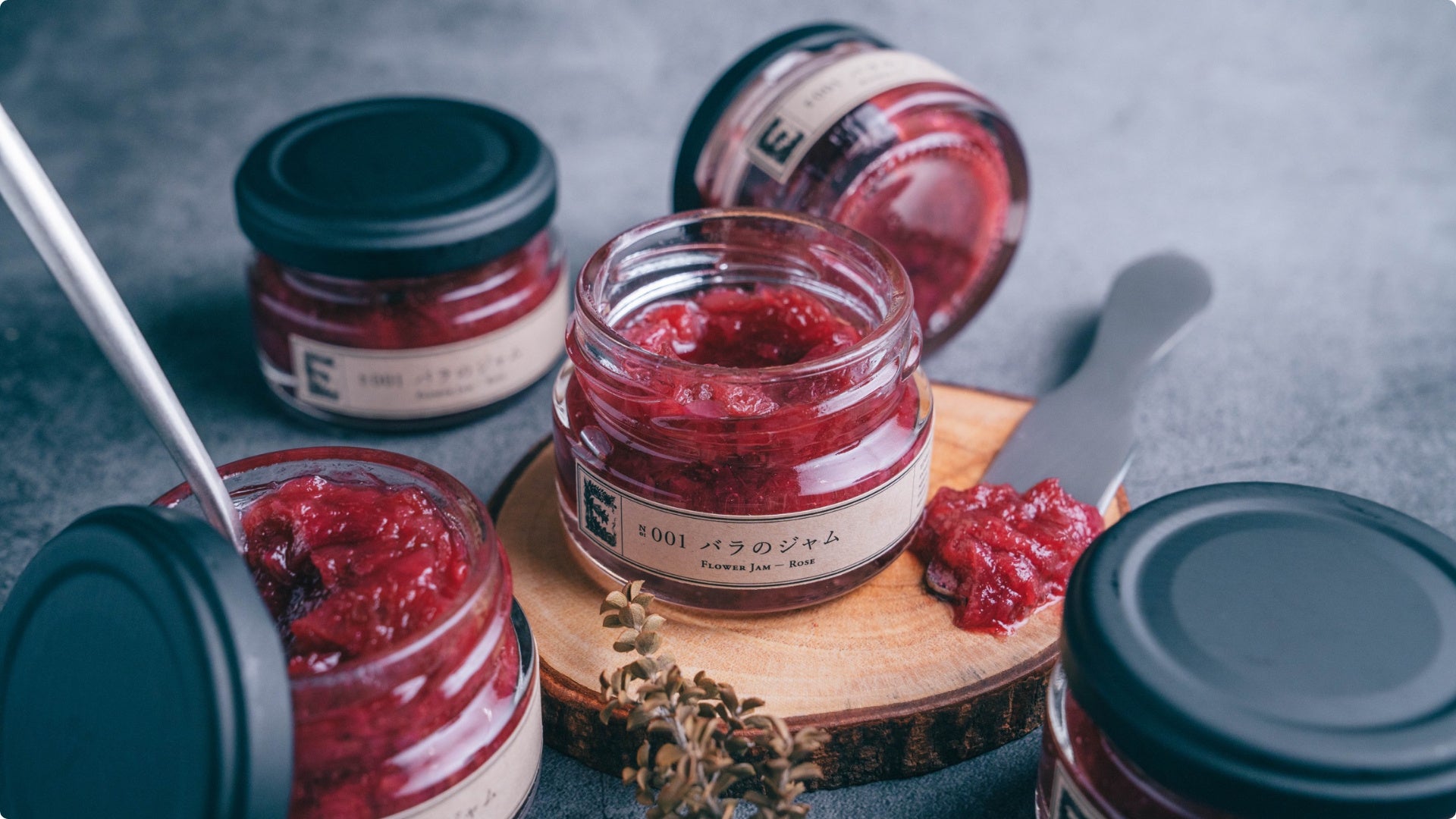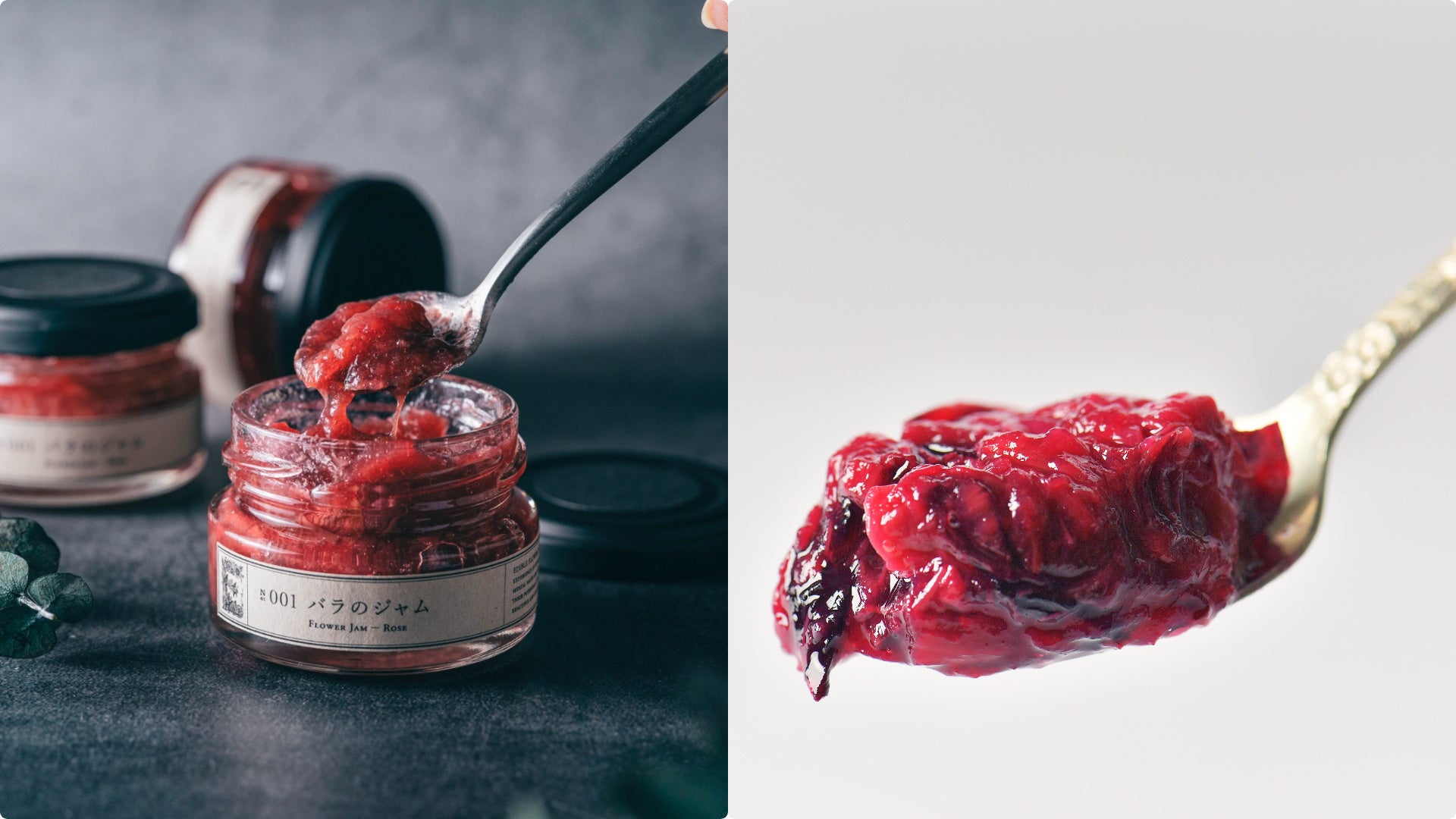 3つ星レストラン愛用の食用バラを使用したバラのジャム。世界でもあまり類を見ない素晴らしい香りの食用バラ。それを、花弁をそのまま食べるジャムにしました。弾ける花びらの素材感、ジャムから香る上質なバラのアロマが食体験をより上質なものに変えてくれます。火を入れすぎないことで、バラのフレッシュな香りを残しています。