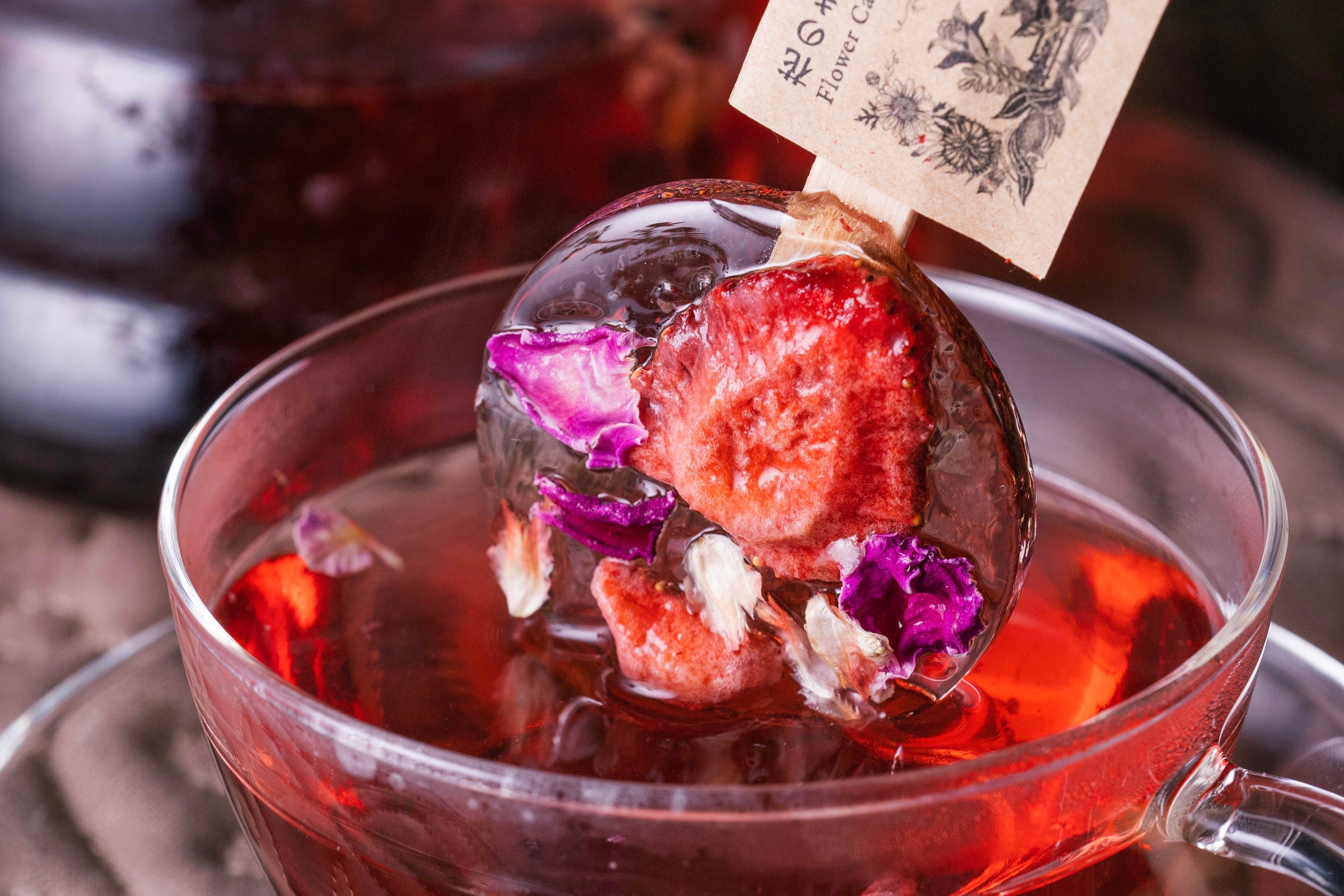 Twitterで700万人以上に拡散した「花のキャンディ」。フレーバーは「ローズ&ストロベリー」。馨しい花の香りとフルーツの爽やかな酸味のハーモニーが楽しめます。紅茶に溶かして、花びらが浮かんだ紅茶と一緒にたのしむのもオススメ。