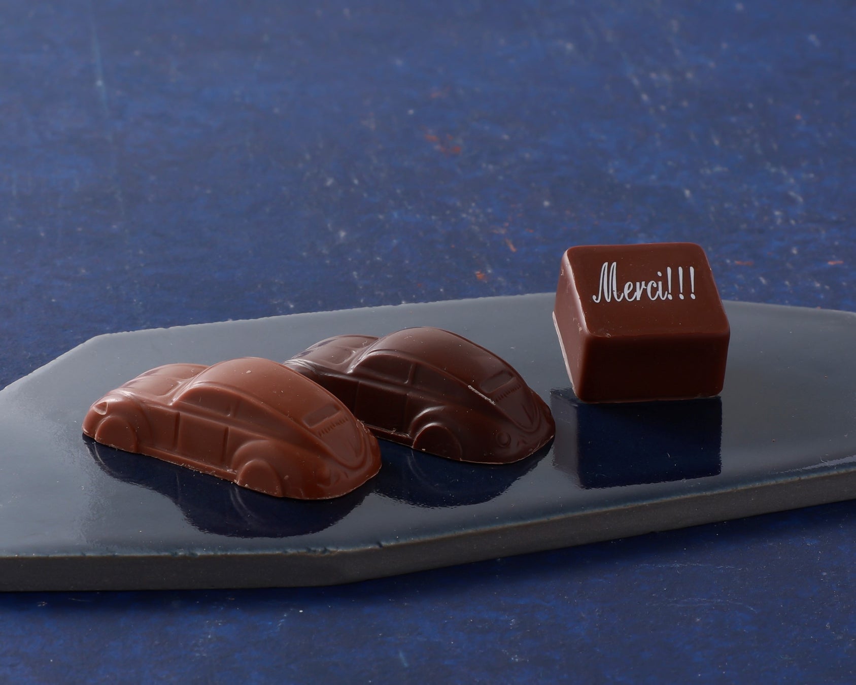 マイルドな味と、ふわりと香るカカオの風味が特徴の車型ミルクチョコレート。