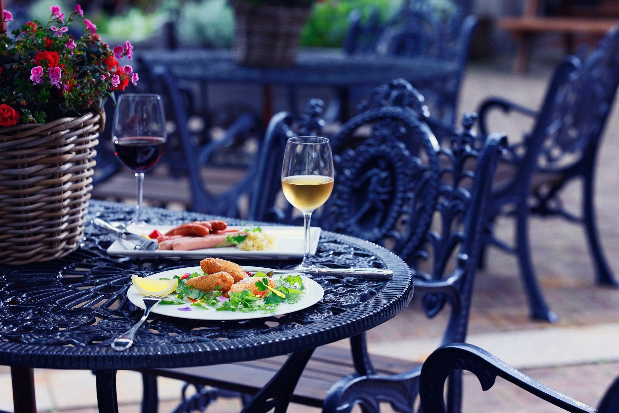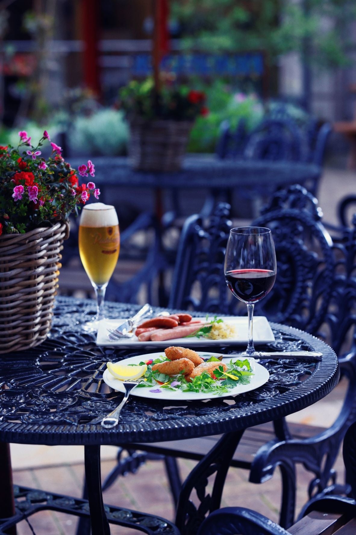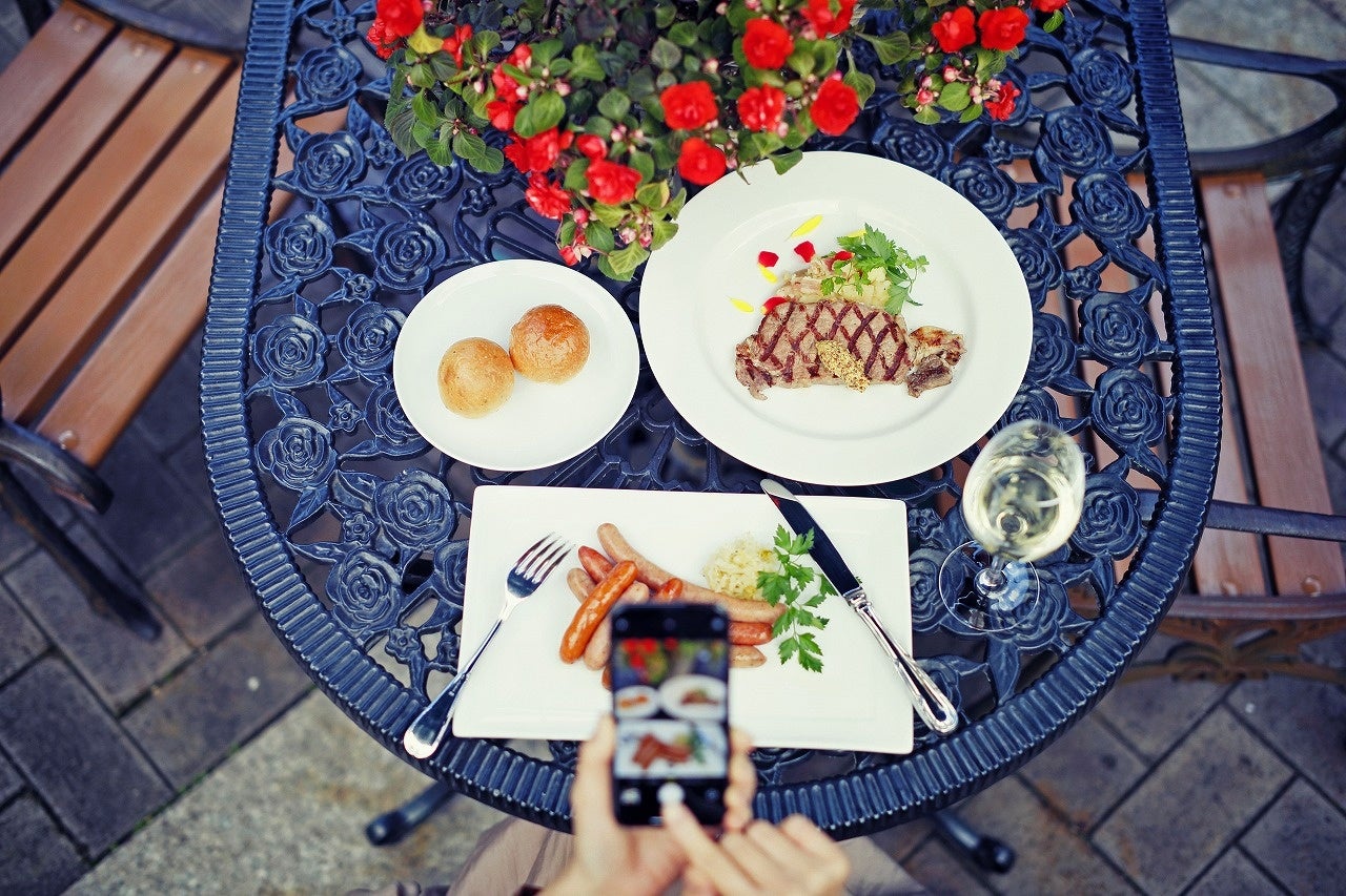 レストランやカフェ、テラスで⾷事やスイーツを、