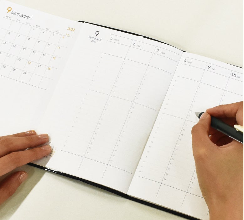 見やすい・持ち運びやすい・メモ欄で振り返りができる事を主点に置き、手帳を使いたくなるような仕様が考えられました。