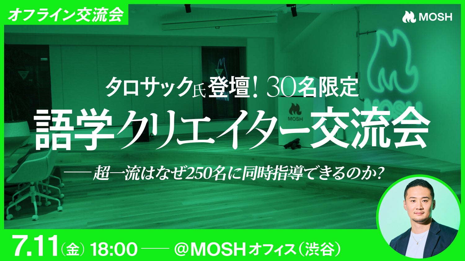 彼らはそれぞれ独自のストーリーや学習メソッドを持ち、従来の画一的な語学教材では得られない「推しから学ぶ楽しさ」を提供します。MOSHはクリエイターとの共創を通じて、学び手が憧れの先生を“指名”して学べる環境を創出し、語学学習の体験価値を高めて参ります。