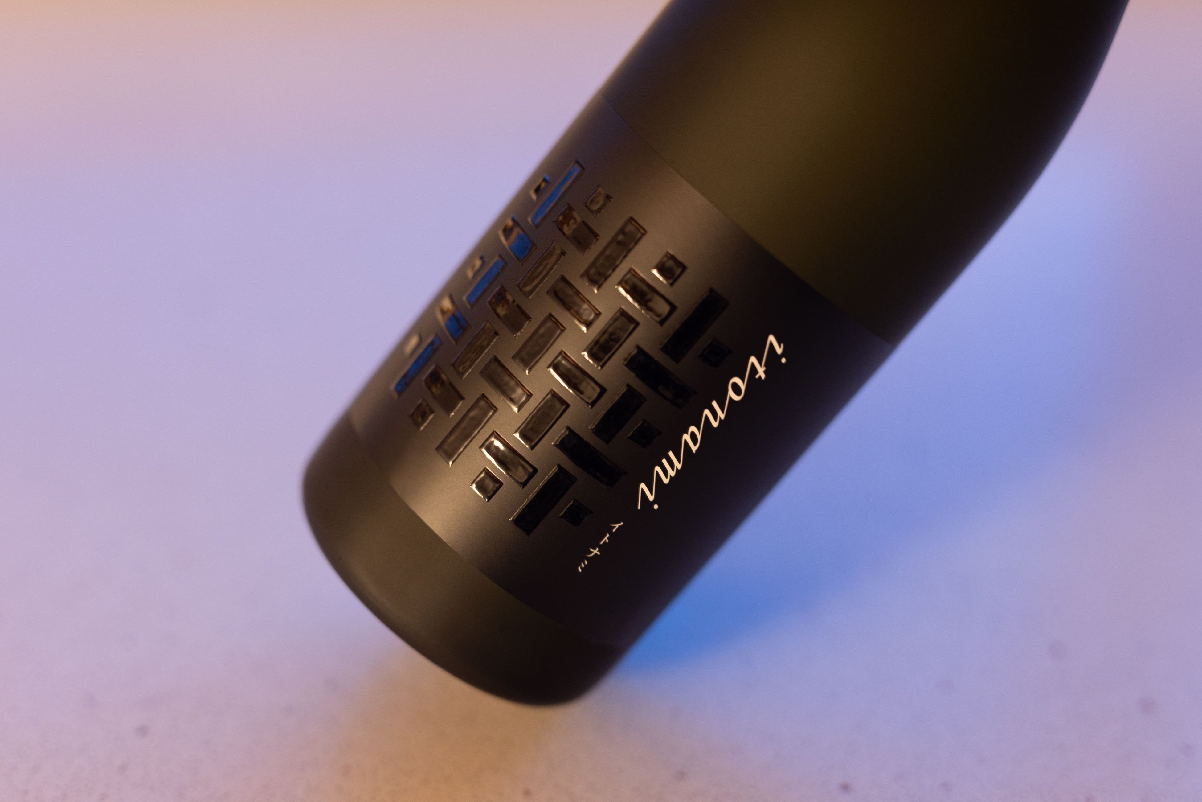 縦のラインは時を超えてブレないもの、横のラインは時とともに変えていくものを意味し、それらを織りなすことで生まれる伝統と革新という「営み」を表現しています。ロゴマークは連綿と受け継がれ、これからも続いていく「営み」を一文字、一文字をつなぐ形として意味づけています。お酒とお料理、会話を楽しむテーブルに、主張しすぎないミニマルなデザインを届けることを目指しました。