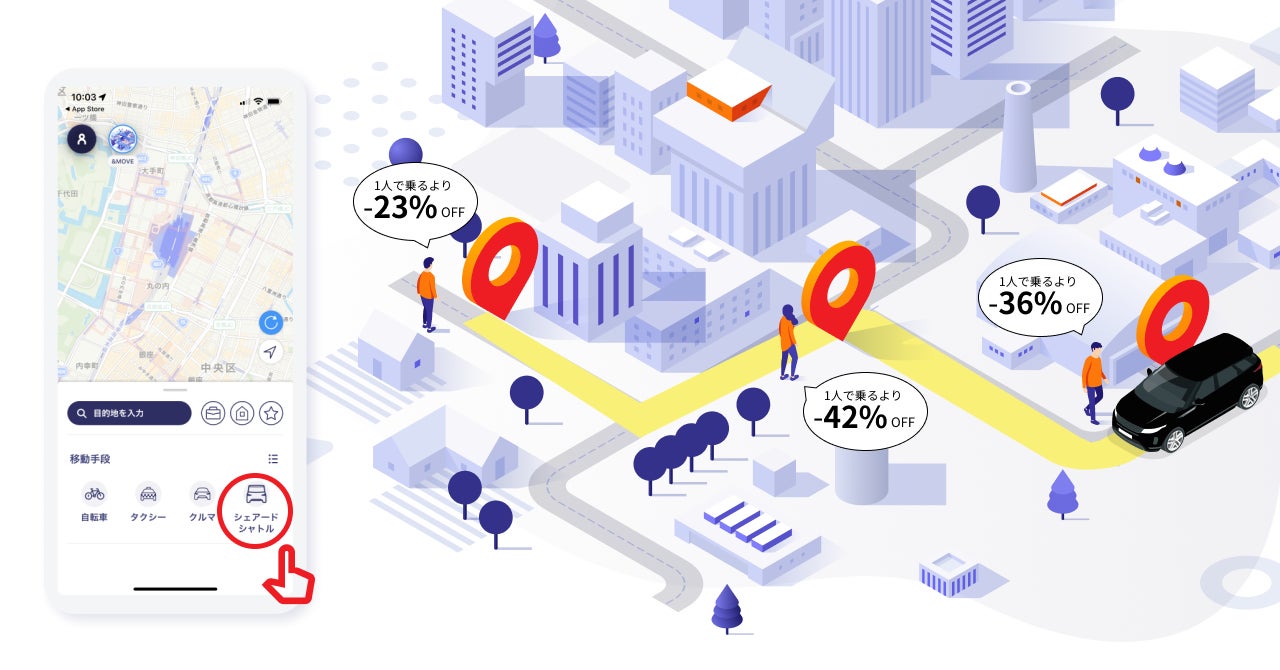 三井不動産/ShareTomorrowとNearMeが連携、有償の「タクシー相乗りサービス」で協業開始