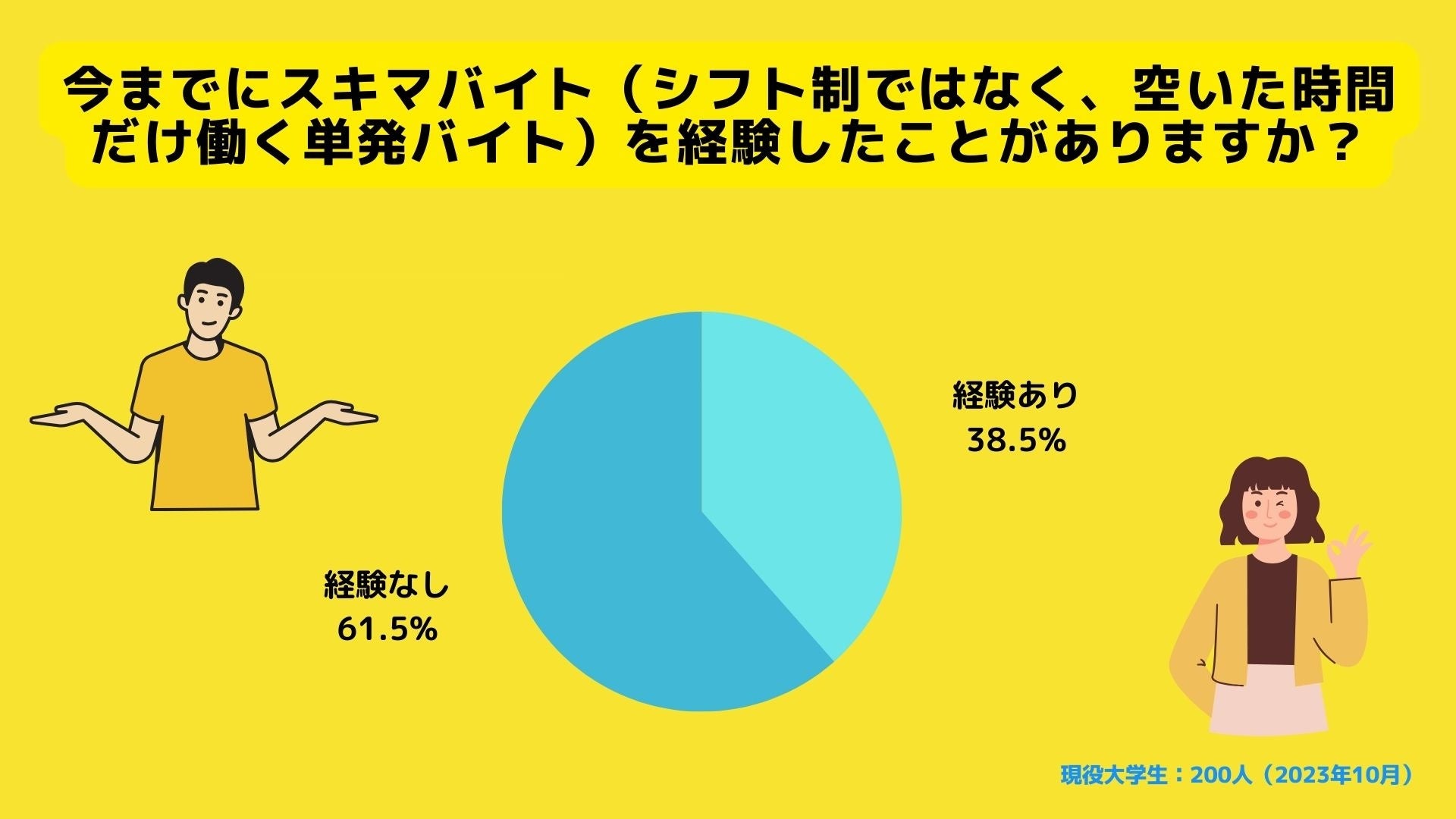 調査の結果、38.5%の大学生がスキマバイトの経験があることが判明。