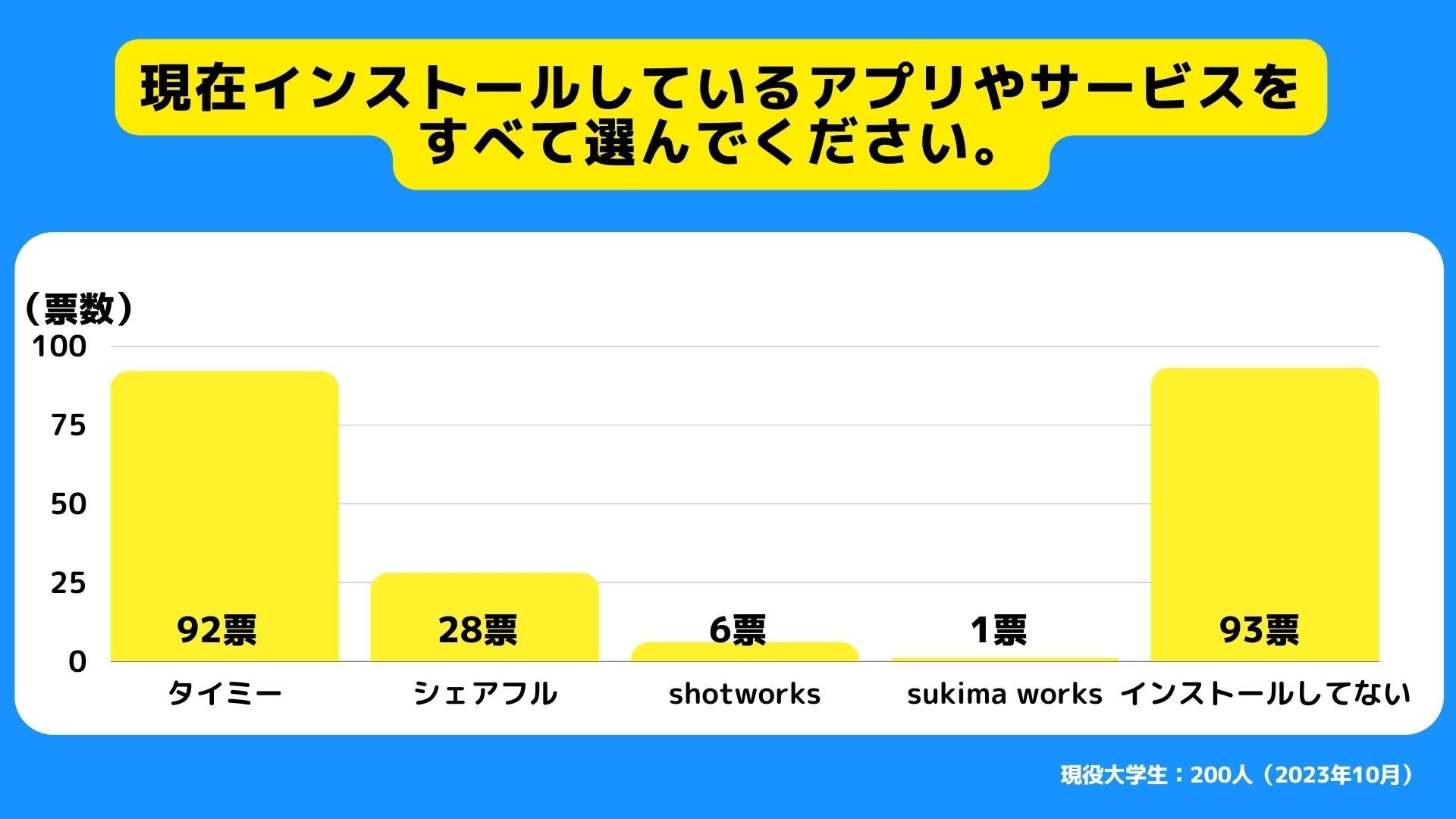 スキマバイト探しに最も利用されているアプリは「タイミー」でした。
