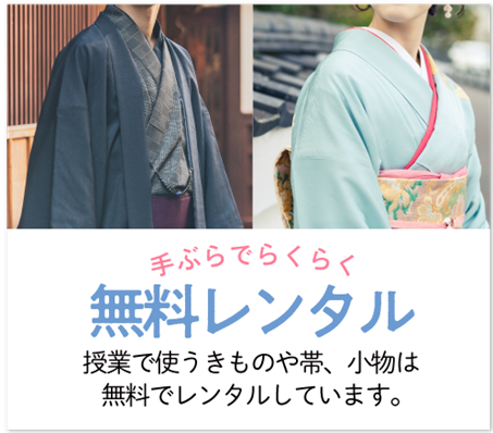きもの一式は無料レンタルしますので、お仕事帰りでも手ぶらでもお気軽に通えます。