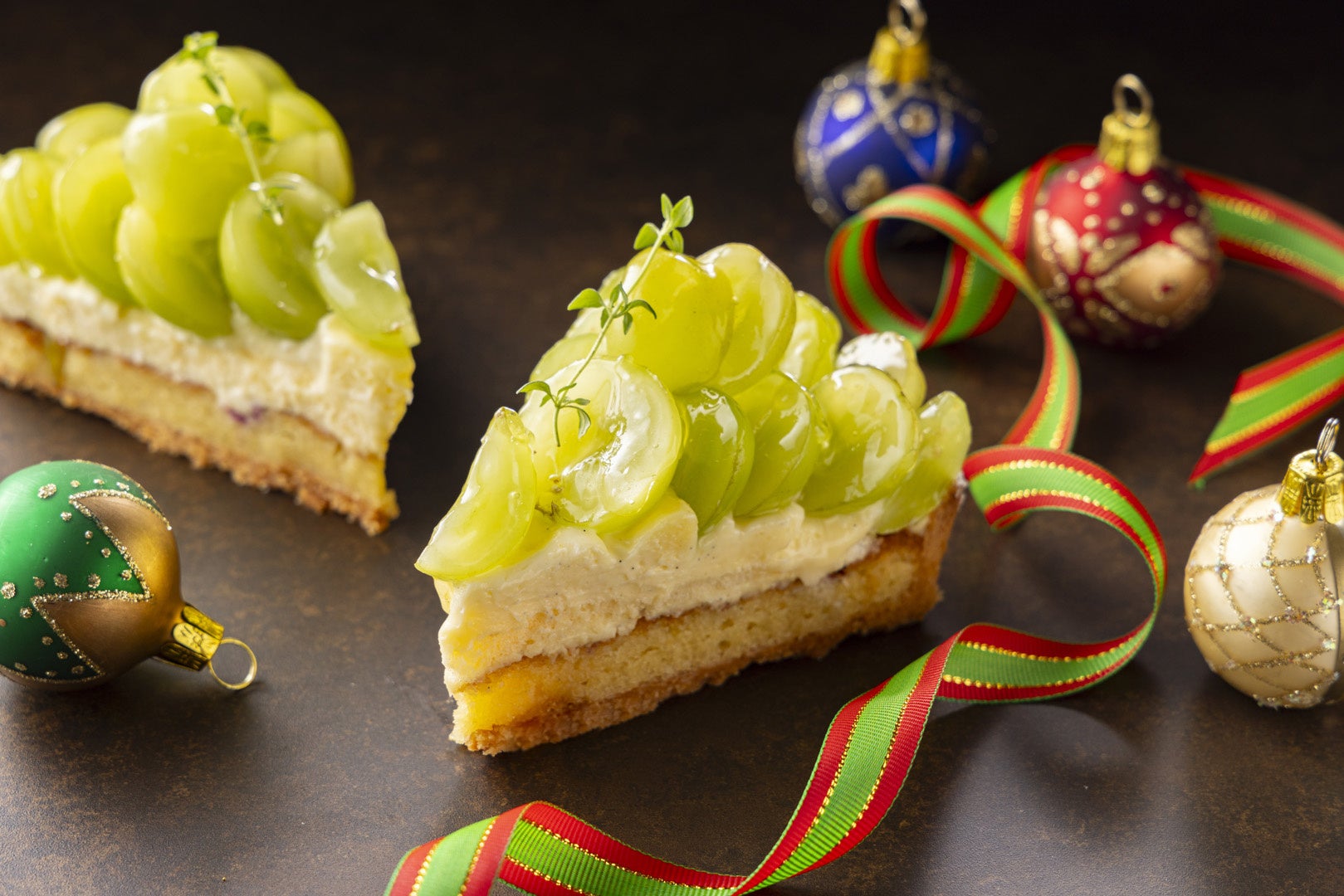淡いグリーンが宝石のように美しい一品。マスカットのさわやかな甘さがクリームとよく合います。※12月21日(土)~12月25日(月)は提供なし。