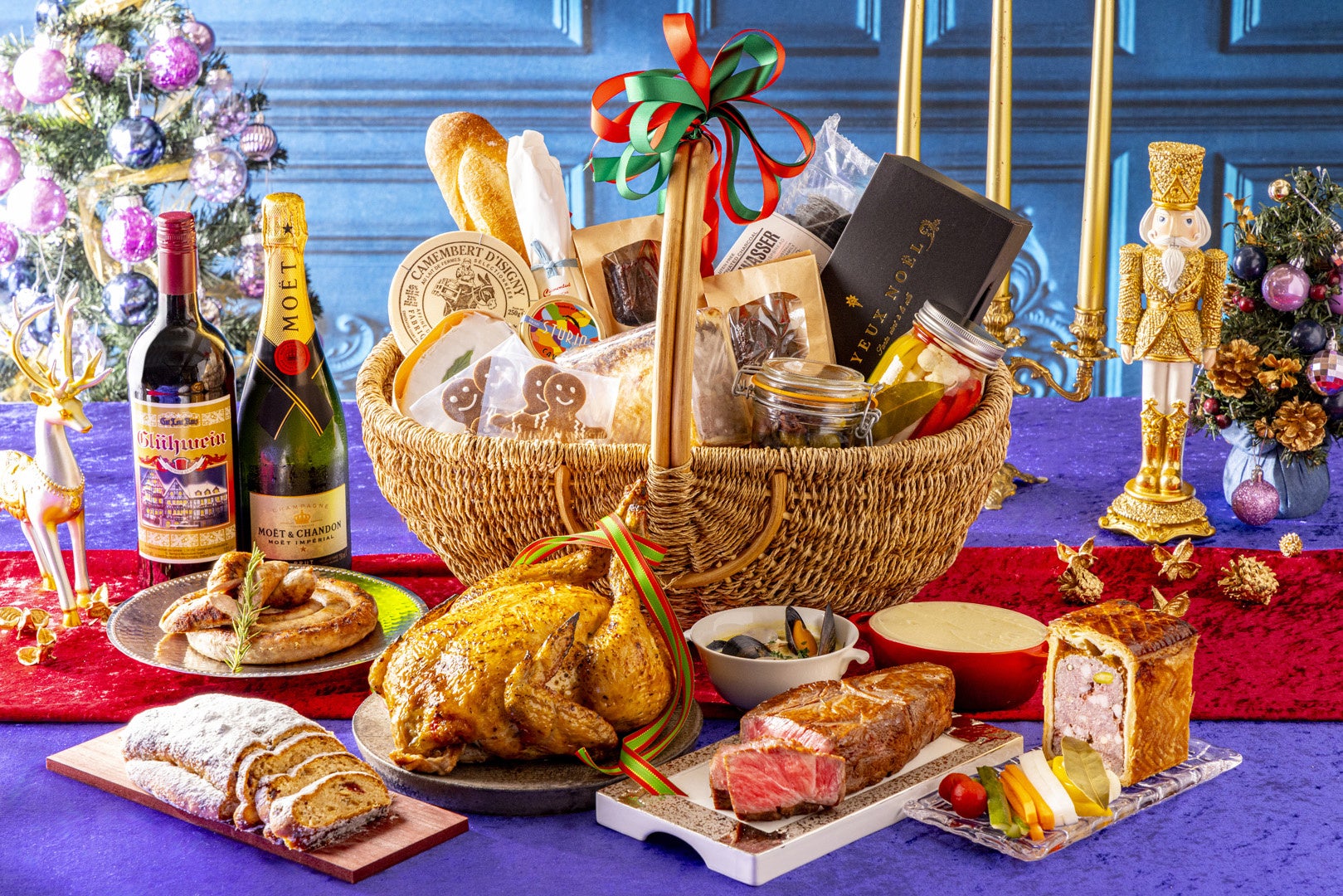 クリスマスパーティーや手土産にふさわしい選りすぐりの逸品17種類をバスケットに詰め込みました。