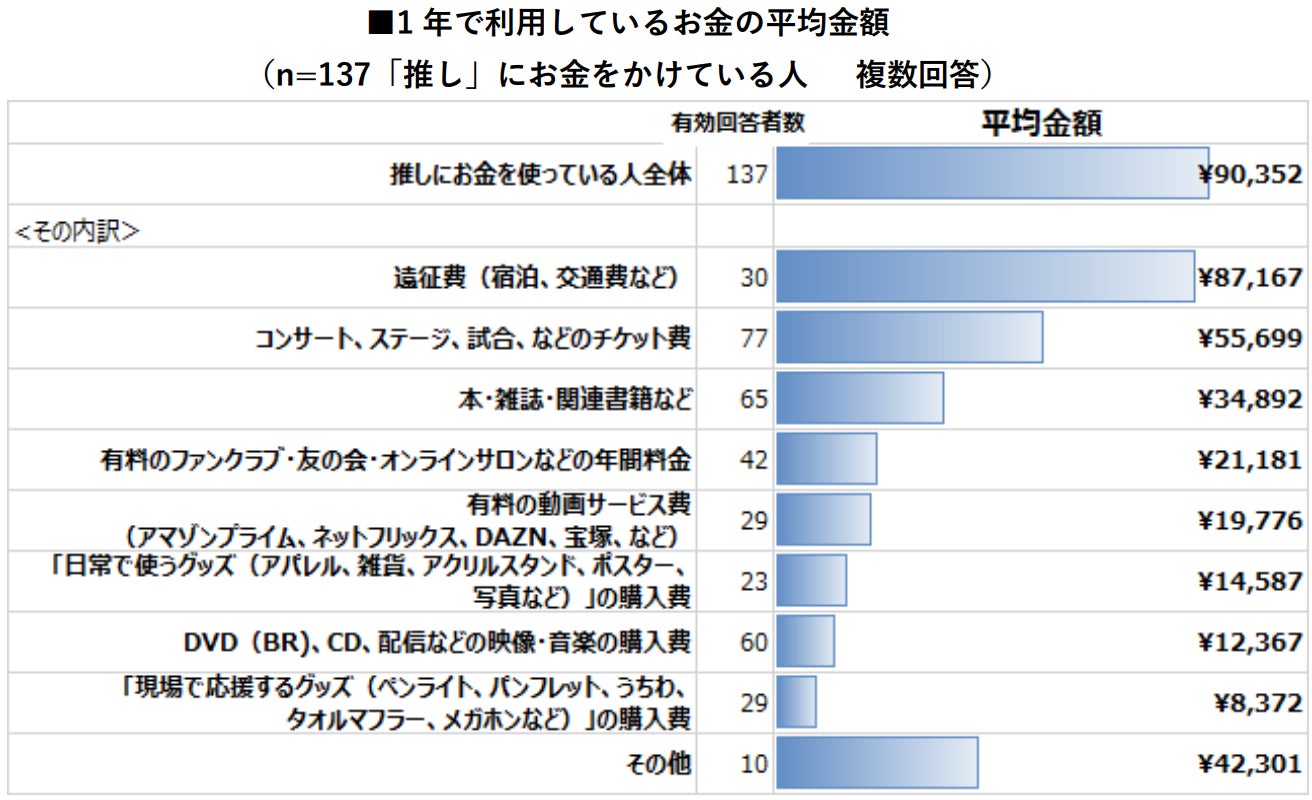 「推し」にお金を使っている 137 人の年間利用額平均は¥90,352。