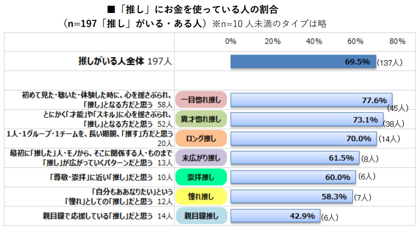 「一目惚れ推し」「異才惚れ推し」「ロング推し」タイプはお金を使っている人が多い一方で、