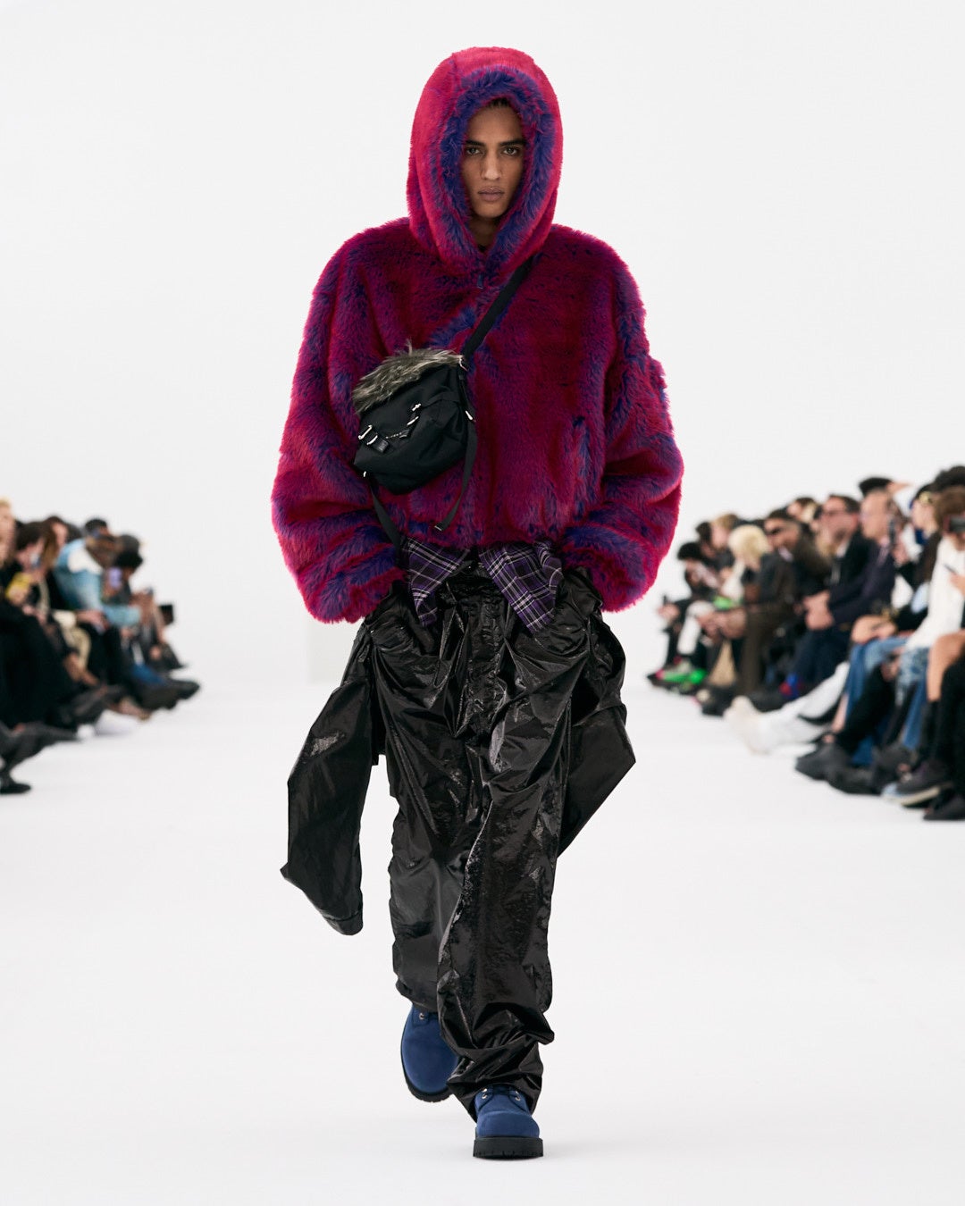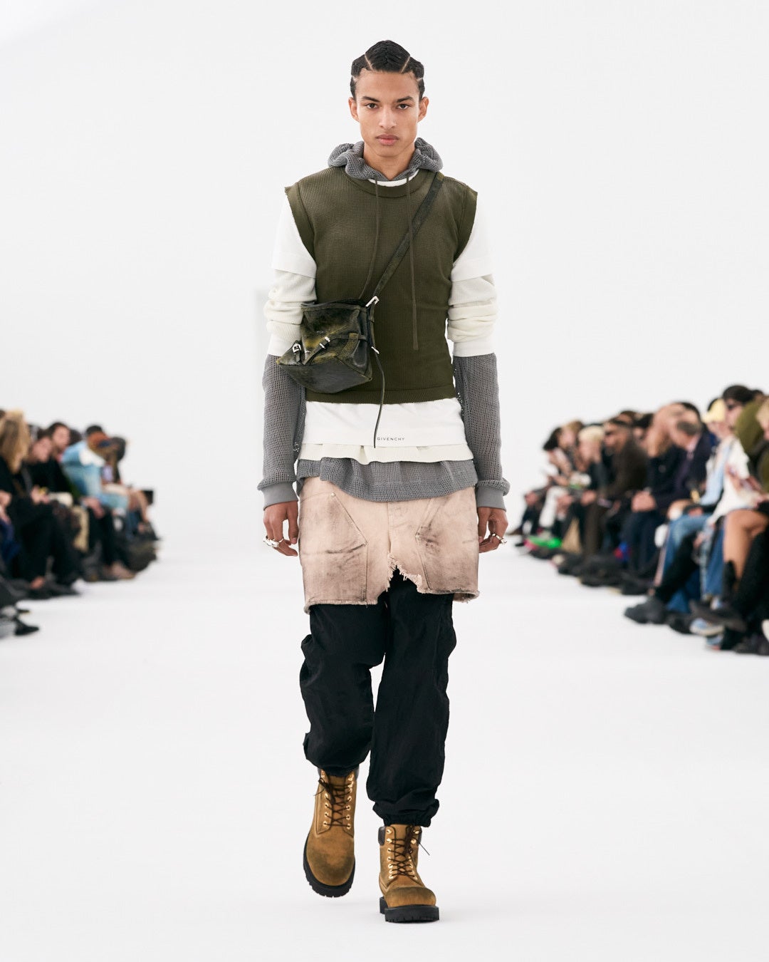 コレクション全体を通して、ワークウェアの典型的なスタイルに華やかなモチーフが加えられました。スネークスキン、チータープリント、フェイクウルフファーなどは、ユベール・ド・ジバンシィが愛したインテリアの中で見られるパターンやテクスチャーからインスピレーションを得ています。バッグはリラックススタイルの『Pandora(パンドラ)』や、『Voyou(ヴォワイユー)』のメッセンジャーバッグなど、ウィメンズのアーカイヴから影響を受けたモデルが登場しました。