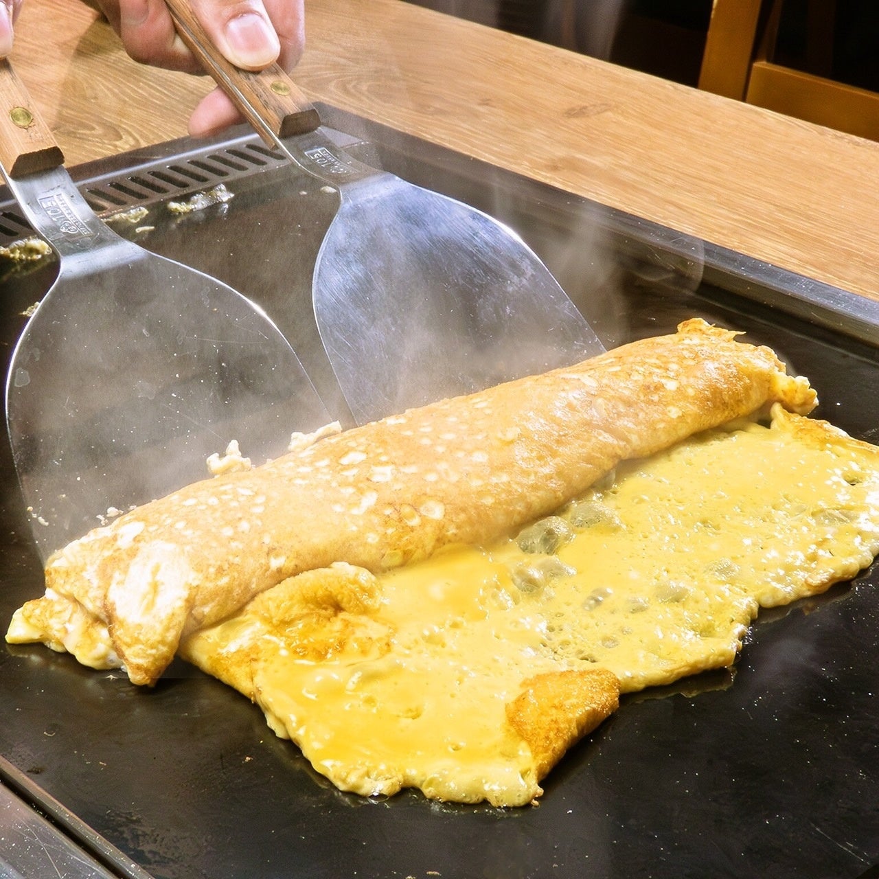 鉄板でスタッフが焼き上げるライブ感満載のチーズイン出汁巻きもおすすめです。