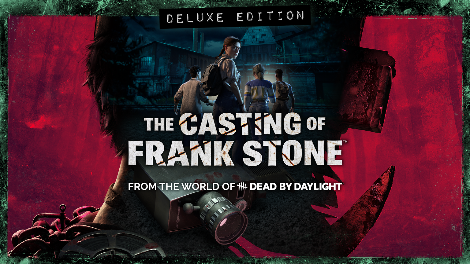 ゲーム本編 +「編集室の床」+ 限定コスチューム8種 +『Dead by Daylight』の追加報酬*(トラッパー用の「フランク・ストーン」マスク、「フランク・ストーン」のバッジ&バナー、「キラーレリック」の魔よけ3種、オリジナルサバイバー用『殺人工場』Tシャツ、『殺人工場』バッジ&バナー、 200万ブラッドポイント)