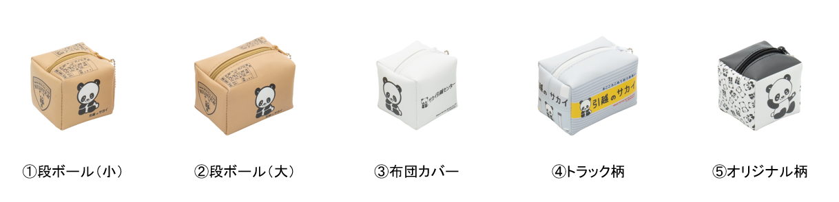 本商品は、株式会社サカイ引越センターのオリジナルキャラクター「まごころパンダ」が印刷されたダンボールや トラックの荷台のデザインをそのまま高さ約 60mm のポーチとして再現しました。ポーチの形状は大きなマチ付き なので大容量。リップや目薬など様々な形状の小物を入れることができます。また、箱型なので積み上げることも 可能。特にダンボールデザインのポーチは引っ越し時のように、思わず積み上げたり横に並べたくなる仕様になっ ています。種類は、「段ボール(小)」、「段ボール(大)」、「布団カバー」、「トラック柄」、「オリジナル柄」の計 5 種類です。