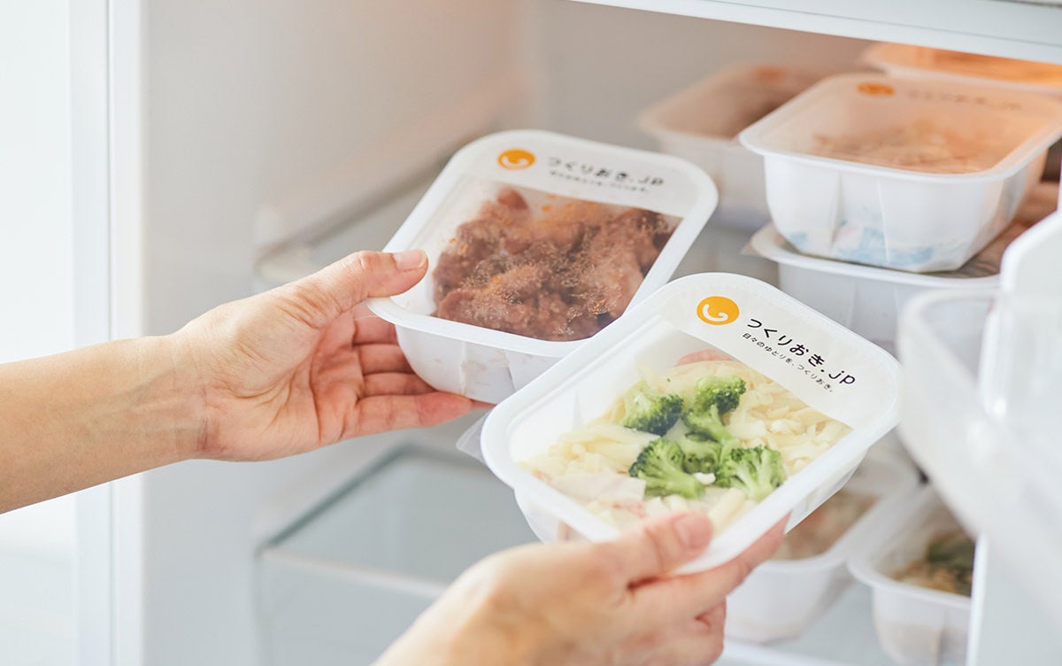 つくりおき.jpは調理経験豊富なシェフと管理栄養士が監修し、専用キッチンで手作りしたお惣菜を、毎週ご家庭に冷蔵でお届けする宅配サービスです。1人前798円(5食プランの場合)で炊事に関わる家事をお任せいただけます。現在1,000レシピ以上の料理を週替わりで提供しています。
