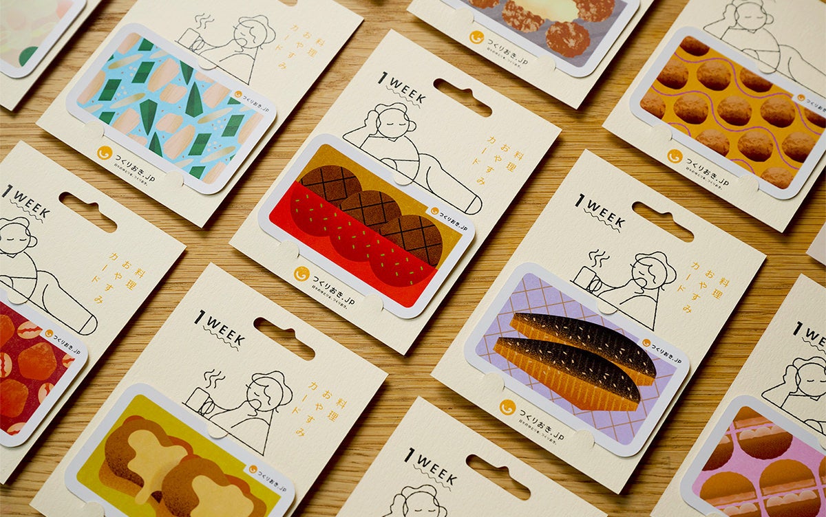 「料理おやすみカード」は、毎日の料理に疲れている方が「宅配食」を気軽に試せるように制作しました。つくりおき.jpをいきなり注文するのはハードルが高いと感じる方でも、カードを1枚持っておくことで「数日だけ料理休暇をとろう」と思えたり、大切な人へのギフトとしても利用できます。