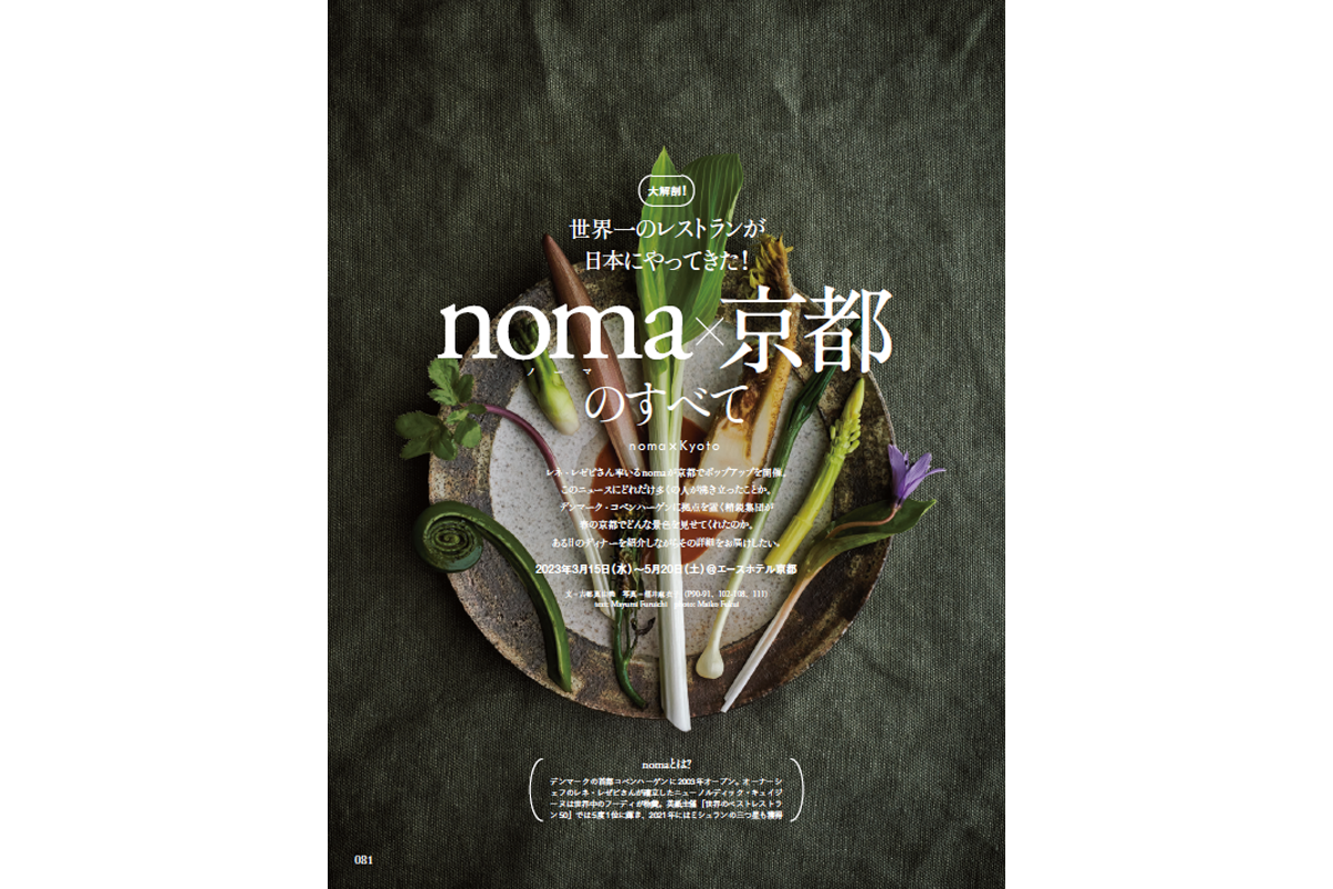 そんな名実ともに“世界一のレストラン”であるnomaが、京都でポップアップを開催。春の京都でどのような景色を見せてくれたのか? ある日のディテーを入り口に、nomaというチームをひも解き、唯一の日本人R&Dヘッドシェフ・髙橋惇一さんには独占インタビューを行いました。そのほか、noma×京都を彩ったニッポンのうつわ作家の一人、壷田和宏さん、亜矢さん夫妻の元へと足を運ぶと、彼らが共鳴した理由が見えてきました。noma×京都の徹底解剖、永久保存版です!