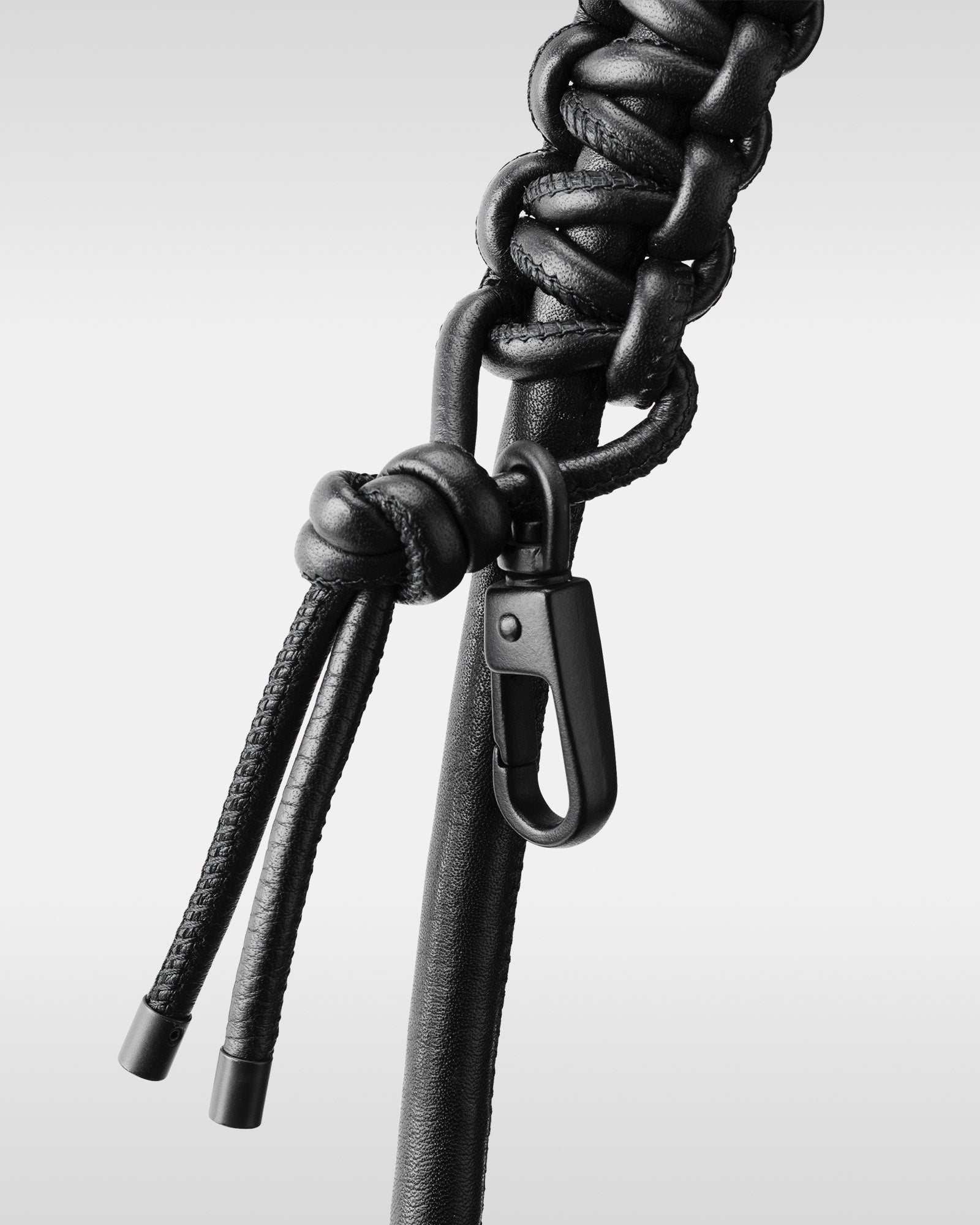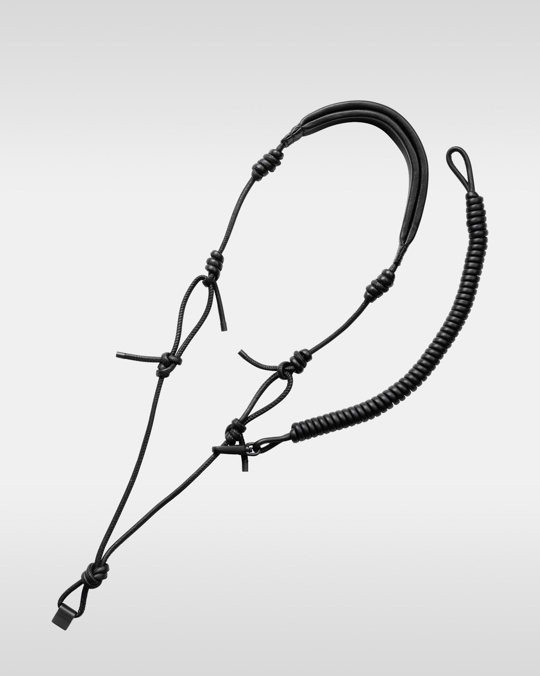 マグネットの付け根部分にノット(結び目)を配することで、確実な固定とスムーズな長さ調節を実現。「OVER-ENGINEERING」を象徴する意匠の一つであるコイル巻きのレザーストラップは、カラビナに通すことでハンドストラップとしても活用できる多機能な設計です。