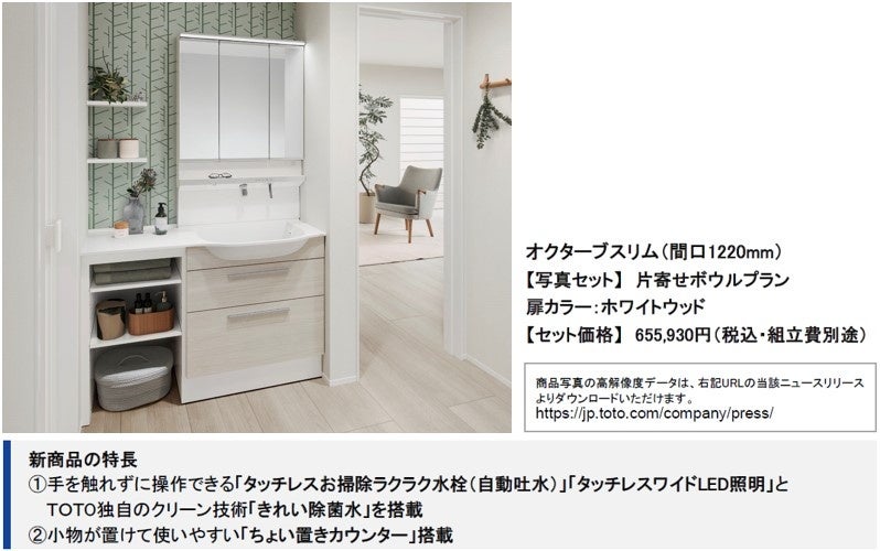 TOTO株式会社(本社:福岡県北九州市、社長:清田 徳明)は、限られた空間にもぴったり納まる奥行き スリムな洗面化粧台「オクターブスリム」をフルモデルチェンジし、2023年8月1日(火)から発売します。