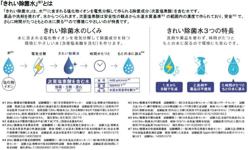 *「きれい除菌水」の除菌効果は実使用環境下での実証実験の結果ではありません。すべての菌を除菌できるわけではありません。