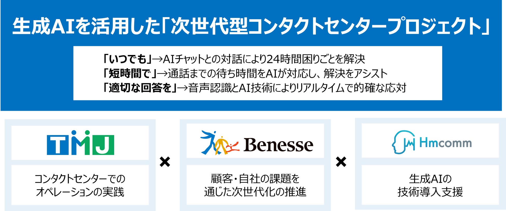 TMJ、ベネッセ・Hmcommと共同で、生成AIを活用した「次世代型コンタクトセンタープロジェクト」を開始