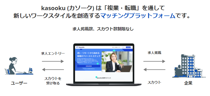 Kasookuを通じた副業・転職の実現により、新しいライフスタイルの創出およびキャリアの充実や、労働市場の活性化に貢献しています。