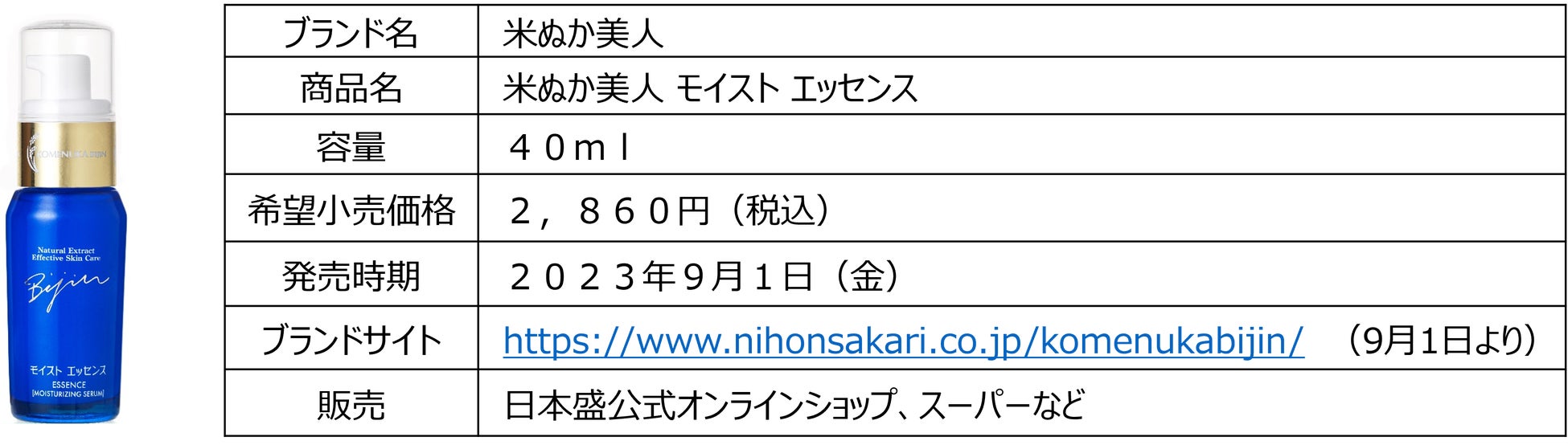 “乾燥を恐れない肌へ”肌にスーッと浸透し うるおいが続く保湿美容液「米ぬか美人 モイスト エッセンス」新発売のお知らせ