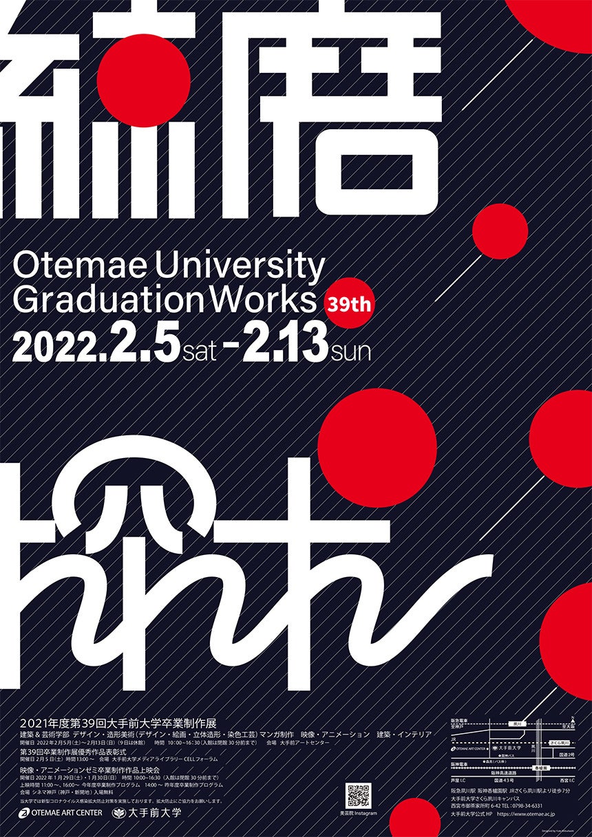 大手前大学 (本部:大阪市中央区、理事長:福井要、学長:鳥越皓之、以下本学) は、2022年2月5日(土)から2月13日(日)まで、建築&芸術学部の学生の創作活動の集大成である『第39回「大手前大学 卒業制作展」』をさくら夙川キャンパス 大手前アートセンターにて開催します。