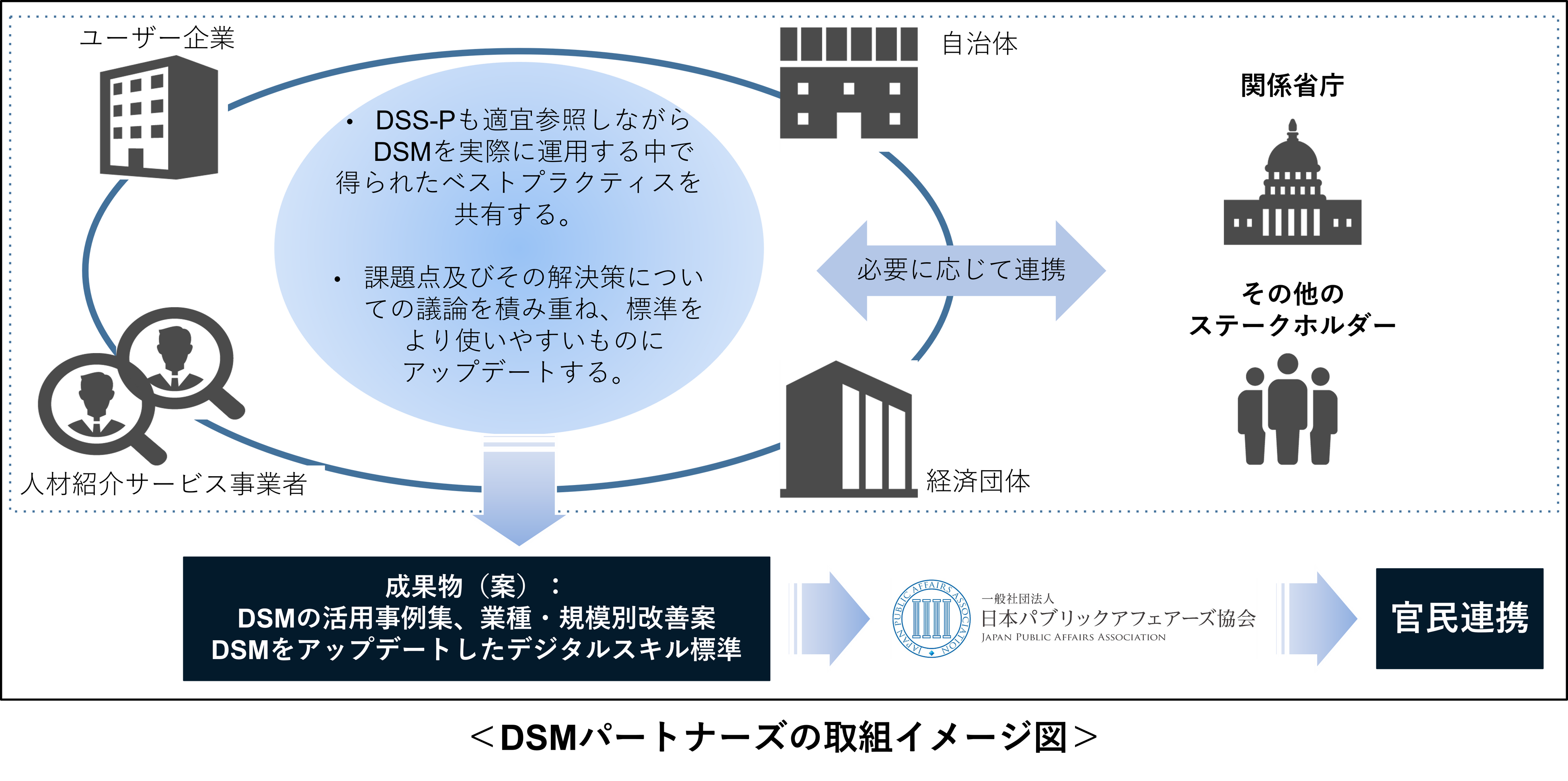 DSMパートナーズは今後も、関係省庁その他のステークホルダーと連携しながら、企業・自治体の皆様とデジタルスキル標準の活用やデジタル人材の確保・育成に関する課題及びその解決策についての議論を積み重ね、デジタルスキル標準の社会実装を目指してまいります。