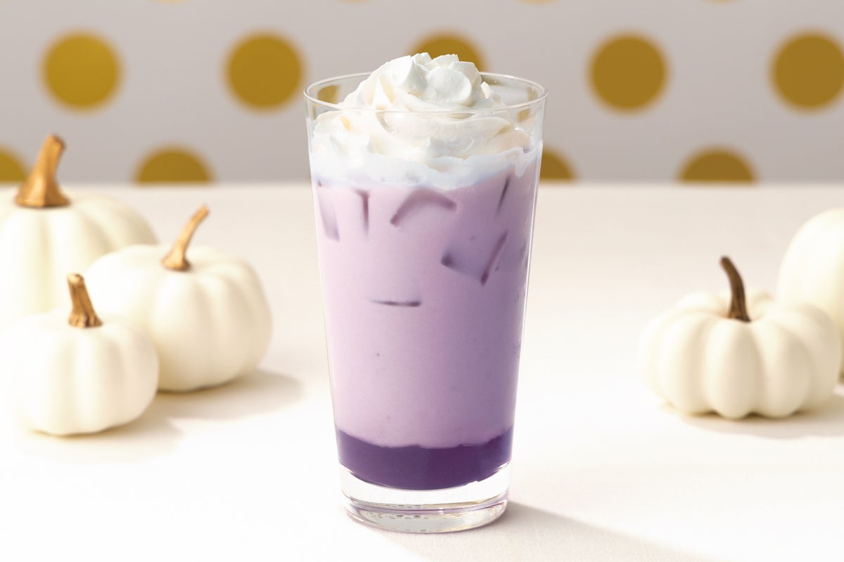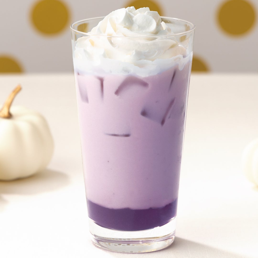 紫いもの中でも鮮やかな濃い紫色が特徴の、国産「紫まさり」・「アヤムラサキ」をブレンドし、白あんをベースに、妖しげなハロウィンカラーのスイーツドリンクに仕上げました。