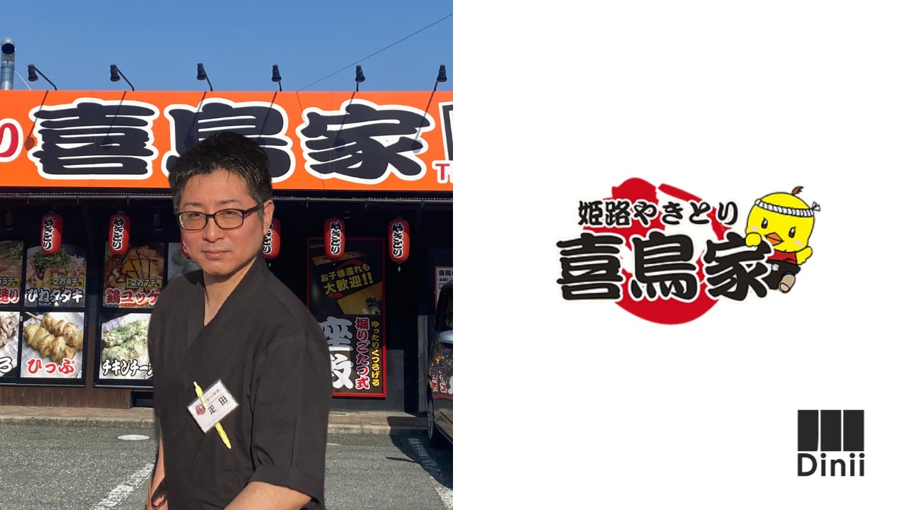 喜鳥家は、兵庫県姫路市で7店舗のやきとり店を運営しています。紀州備長炭で焼き上げる鮮度抜群の国産ハーブ鶏が特徴で、「姫路でやきとり屋といえば、喜鳥家と呼ばれる企業を創る」をビジョンに掲げています。オーダーテイクや商品分析など、飲食店でのあらゆる業務を手書きで対応することに限界を感じ、DXツールの導入を検討していました。そこで、定期的に参加している勉強会でダイニーモバイルオーダーのことを知り、喜鳥家に来店したお客さまのデータを取得し、LINE公式アカウントでのクーポン配信などを用いた販促活動に生かせること、ダイニーの協力なサポート体制を魅力に感じたことがきっかけで、「ダイニーモバイルオーダー」を導入しました。2023年11月に導入を開始し、現在では姫路市で運営する7店舗で活用しています。