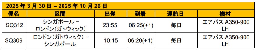 2025年3月30日より、シンガポール - ロンドン(ガトウィック)間のSQ312便とSQ309便は、週5便から週7便へ増便します。