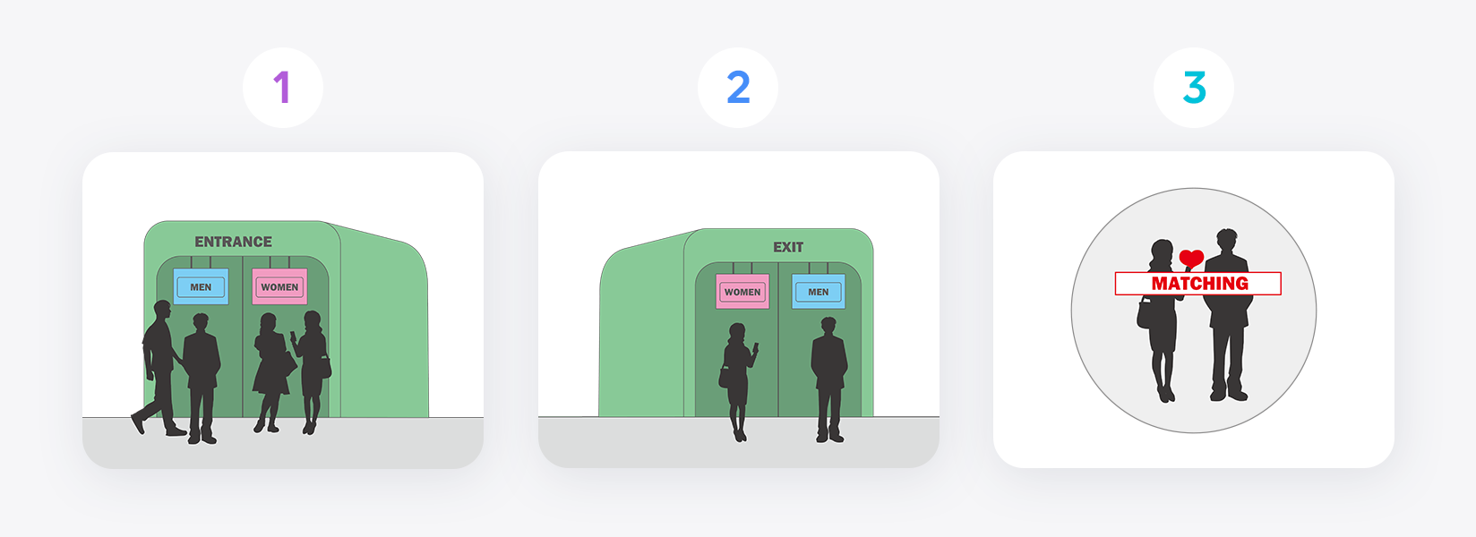 2.同じタイミングでお並び頂いた男女がマッチング。