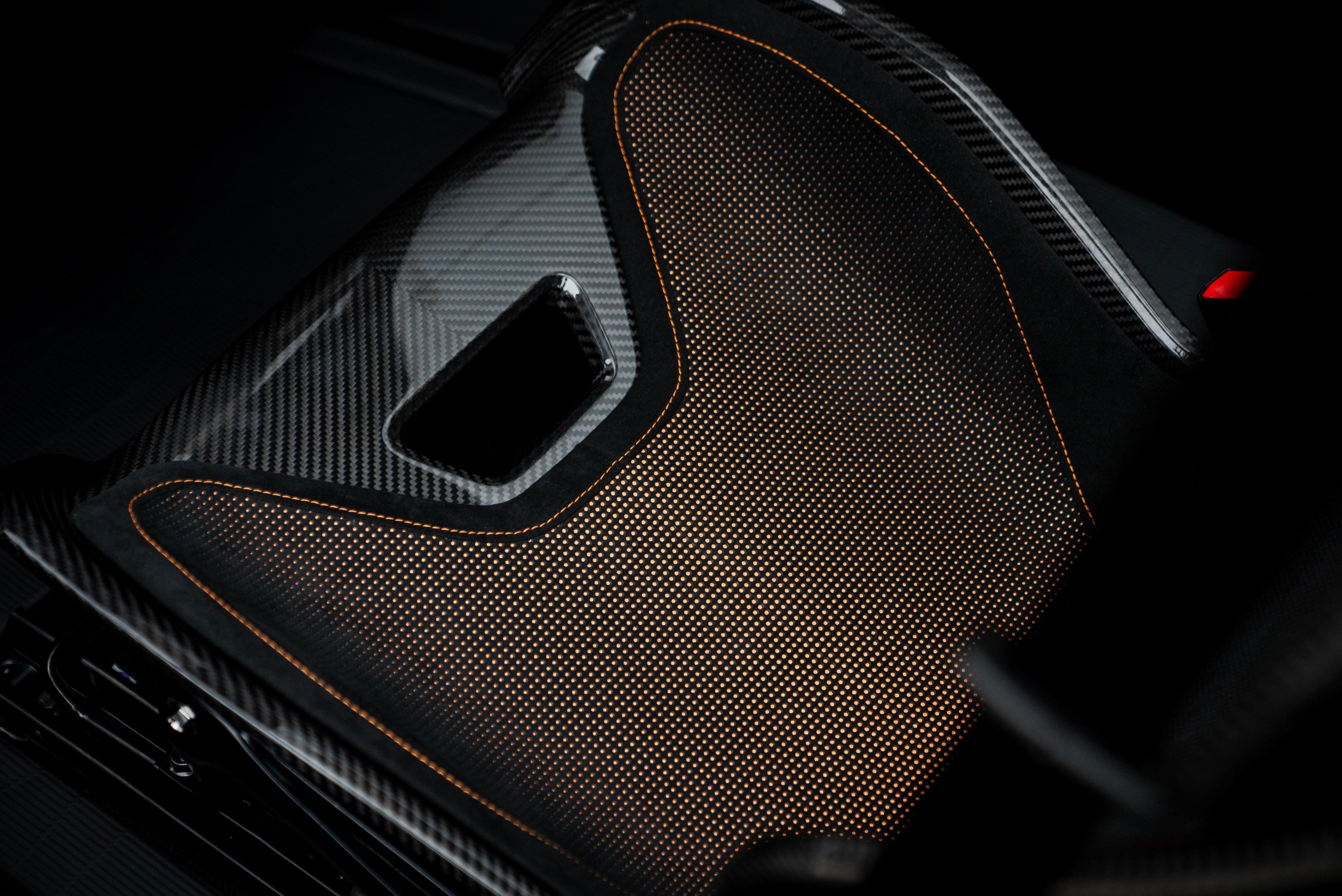 2022年のGoodwood Festival of Speedでの初コラボレーションに続き、アルカンターラ社のデザイン・チームは21C Blackbirdエディションのダイナミックな雰囲気を高めるため、特別なインテリア・アプリケーションを独自に開発しました。ハイパーカーの内装は、パンチング加工を施したブラックのALCANTARA®にオレンジの裏地を組み合わせ、力強いインテリア空間を演出しています。また、このコラボレーションを記念して、ALCANTARA®のマテリアルで作られた特注のトートバッグもデザインされました。このバッグには、CzingerとALCANTARA®のロゴが刻まれています。
