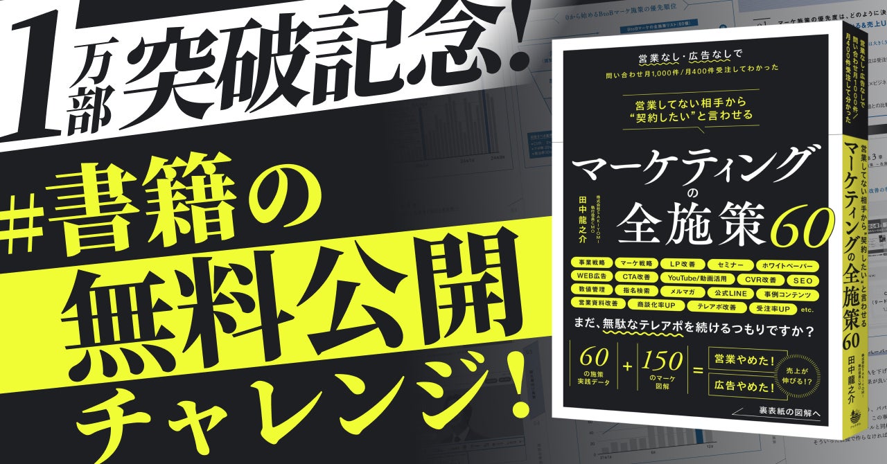 この度1万部を突破し、多くの方に手にとっていただけたことを非常に嬉しく思います。本書は、私自身がマーケティング未経験から4年間で学んだすべてを詰め込んだ集大成です。多くの中小企業の経営者やマーケティング担当者の方々に実践していただき、事業成長の一助となれることを心から願っています。今後も実践的なマーケティング情報の発信を続けてまいります。