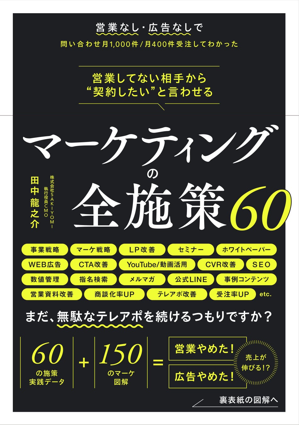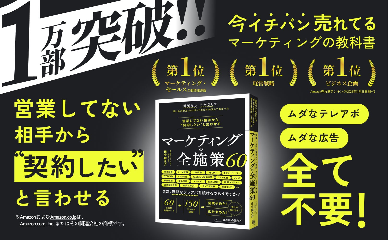 株式会社SAKIYOMI(本社:大阪市北区、代表取締役社長:吉田 睦史)の執行役員CMOである田中龍之介の著書『営業してない相手から"契約したい"と言わせる マーケティングの全施策60』(ブックダム社発行)が、2025年6月30日に発行累計1万部を突破いたしました。
