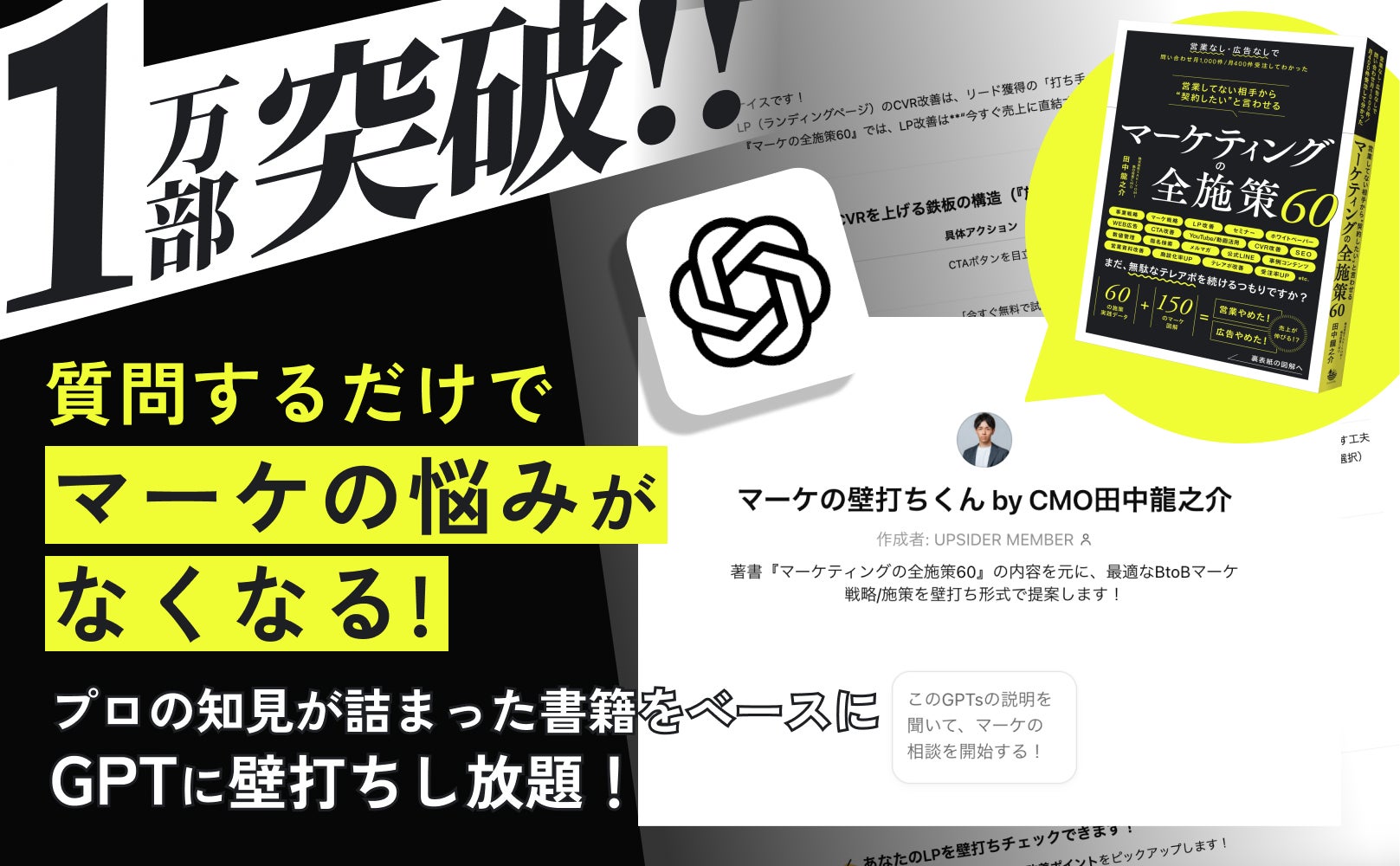 また、累計1万冊を記念して、Youtubeにて書籍の一部解説動画の公開、noteにて書籍の内容を一部無料公開、さらに、書籍を学習済みでマーケティングの壁打ちができるGPTs(カスタムGPT)の配布、まとめ買い割引などのキャンペーンを実施いたします。詳しくは下記リンクをご覧ください。