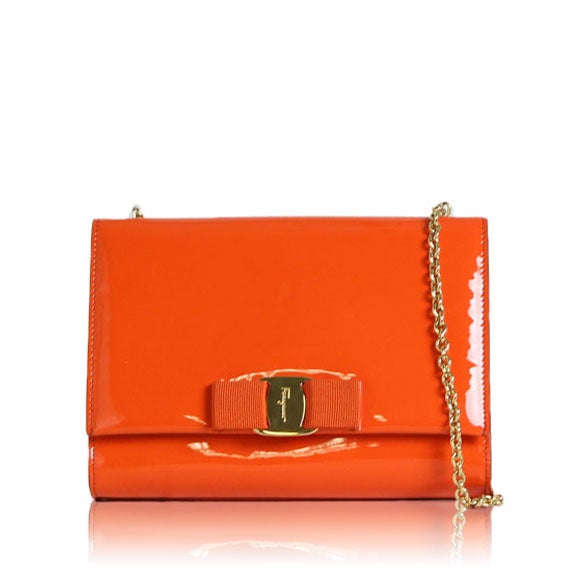 ボディと同色のリボンが、控えめながらも愛らしい表情を演出します。ロゴ入りバックルやチェーンの艶めきでスタイリングを華やかにまとめてくれる逸品です。