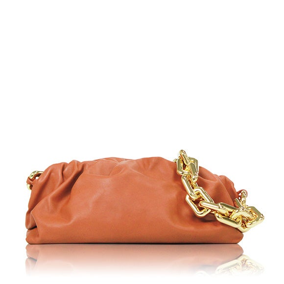しなやかなシルエットとマグネットで開閉できる大きな開口部が特徴のアイコンバッグ「ポーチ」。ショルダーバッグとして小脇に抱えるとトレンディな装いが完成します。