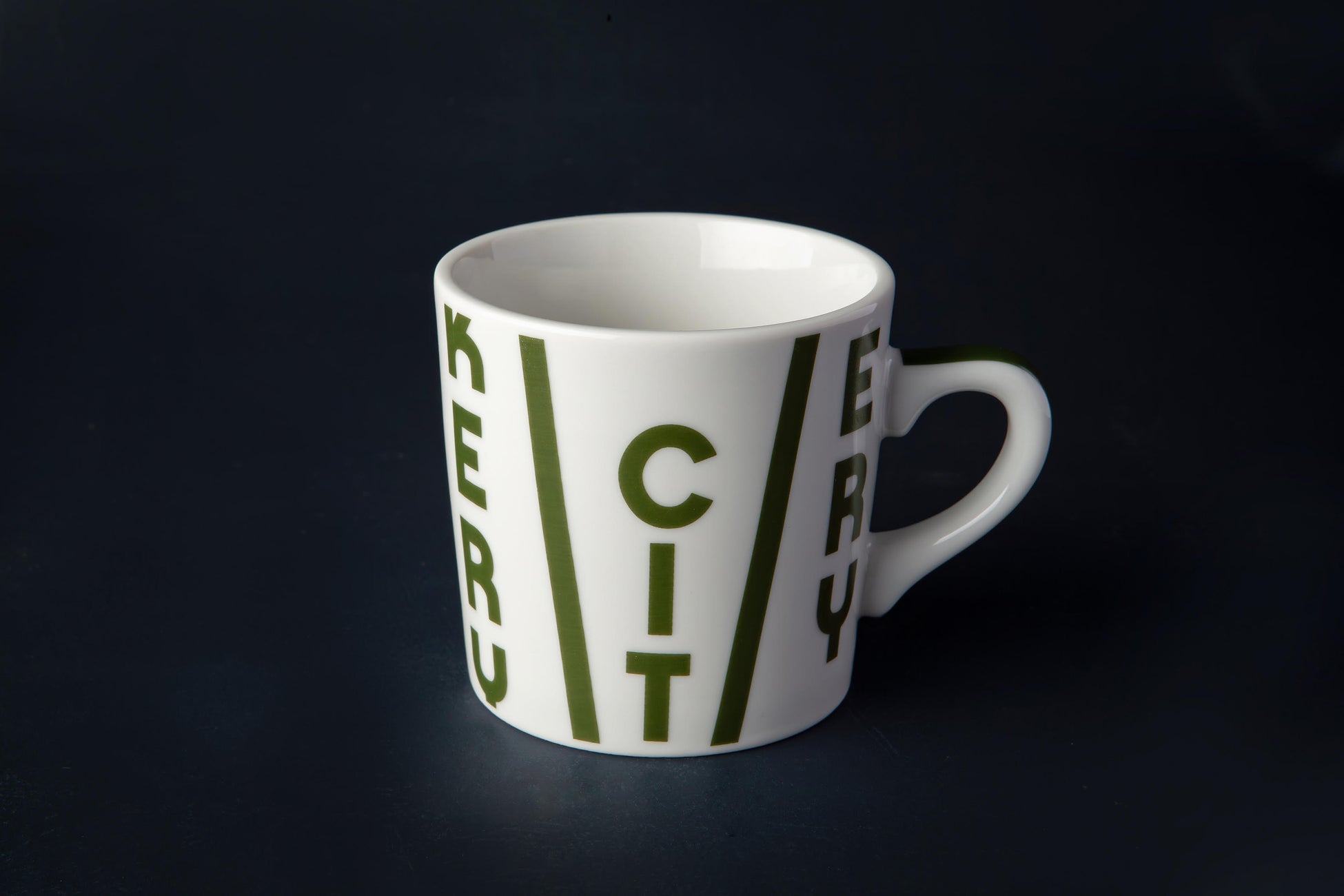 京都限定カラーの《緑》でプリントされた、THE CITY BAKERYロゴがぐるりとデザインされたマグカップ。
