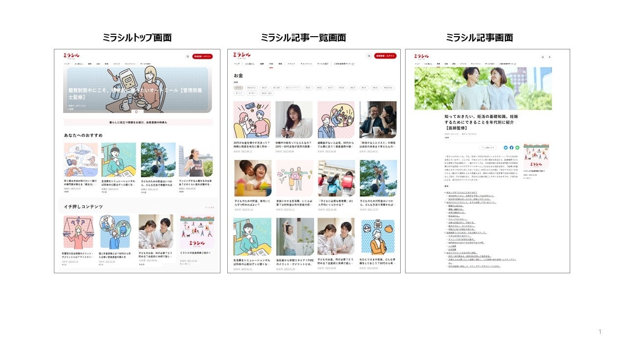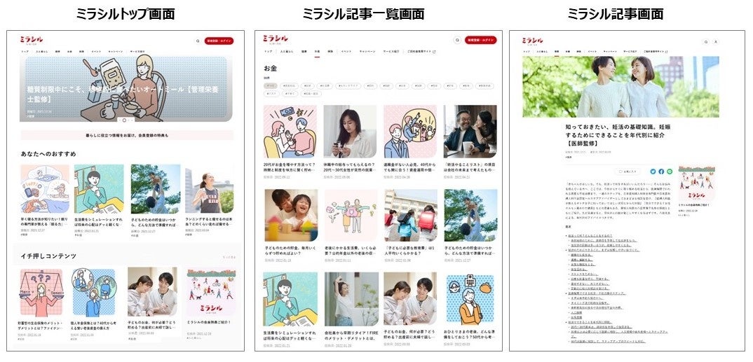 第一生命では、幅広いお客さまのCX向上に貢献できるよう、4つの体験価値(保障/資産形成・承継/健康・医療/つながり・絆)に関する人と暮らし、健康、お金、保険についての情報コンテンツの発信やデジタル空間の中でお客さまとの日常的なコミュニケーションを生み出す新たな情報サイト『ミラシル』を2021年12月27日より提供しています。