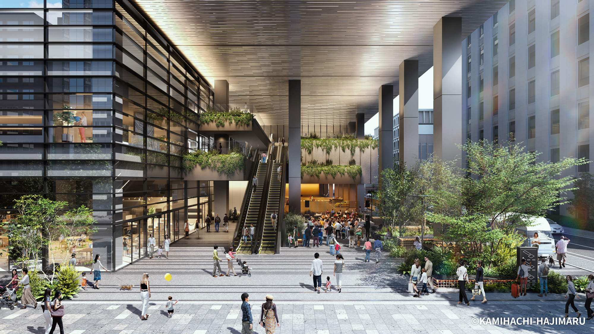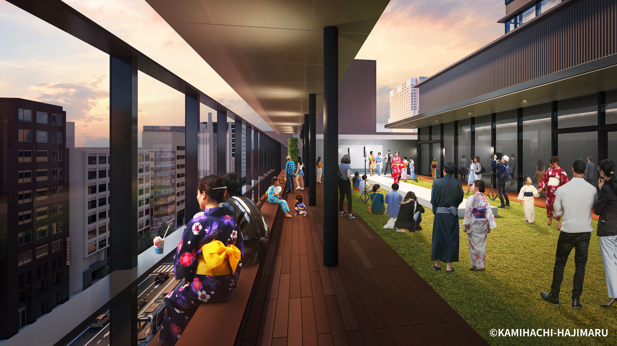 同ビルには1階「かみはちひろば」、6階「かみはちこうえん」など市民・訪問者が利用できるオープンスペースも整備されます。