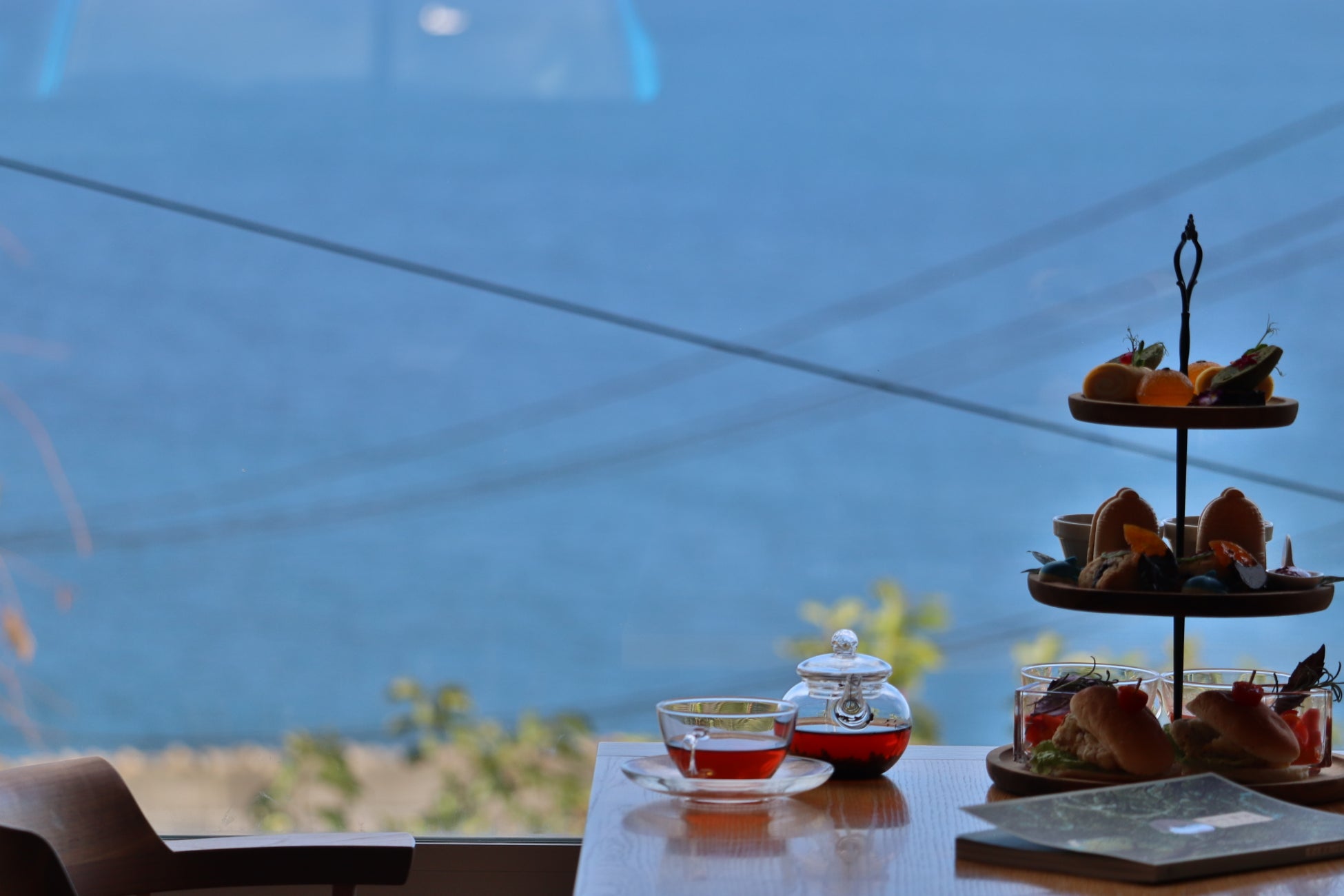 今回は、”真鶴の冬”をテーマにした『真鶴三段手帖 ―冬―』を、2025年12月3日〜2026年2月28日(※一部除外日あり)まで限定でご用意。真鶴町案内読本『真鶴手帖』から着想を得た、“味わう旅”の提案として、真鶴町に引っ越してきた高校生が真鶴の民話をもとに考案した話題のスイーツ「ぼんぼん鮫最中」や、冬の柑橘・魚介・野菜など真鶴ならではの旬の味覚を取り入れたセイボリーが並びます。「CAFE&RESTAURANT燈下」は、大きな窓から海を一望できる開放的なロケーションが魅力。冬の澄んだ空気の中、真鶴の海と空が織りなす静かな景色を眺めながら、心まで温まるひとときをお楽しみください。