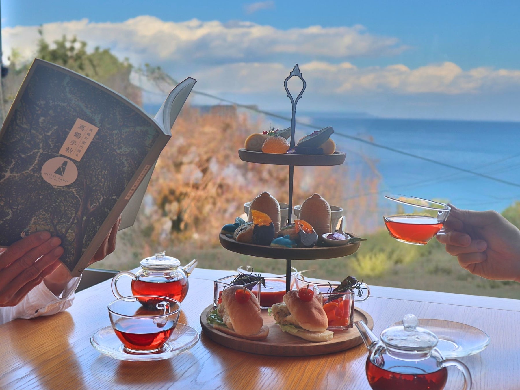 「HOTEL FARO manazuru」に併設されたレストラン「CAFE&RESTAURANT燈下」(神奈川県真鶴町)では、地元の美味しさをぎゅっと詰め込んだアフタヌーンティー『真鶴三段手帖』を、好評につき通年で展開することとなりました。四季折々の真鶴の恵みを味わえるよう、季節ごとにメニューを入れ替えながらご提供いたします。