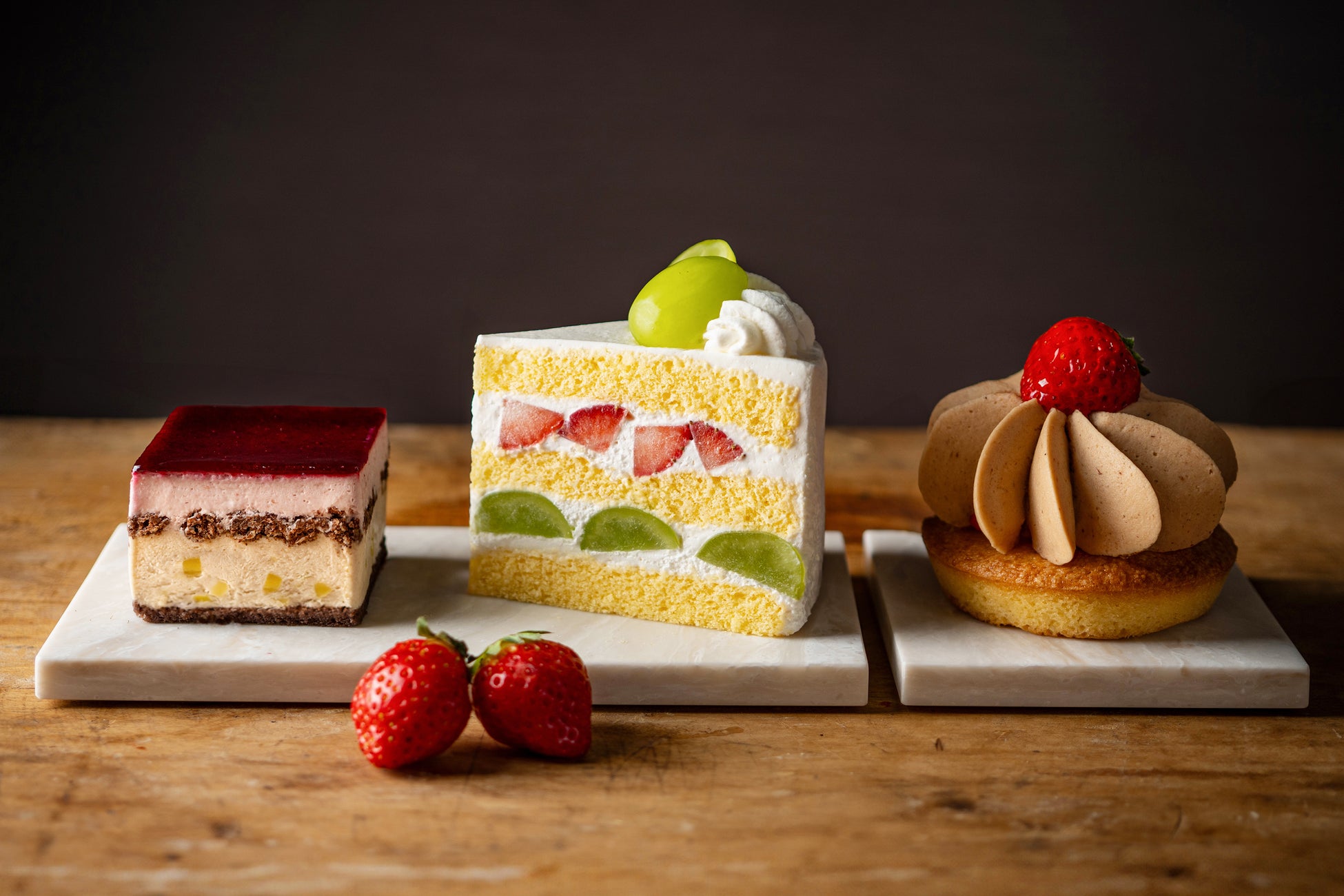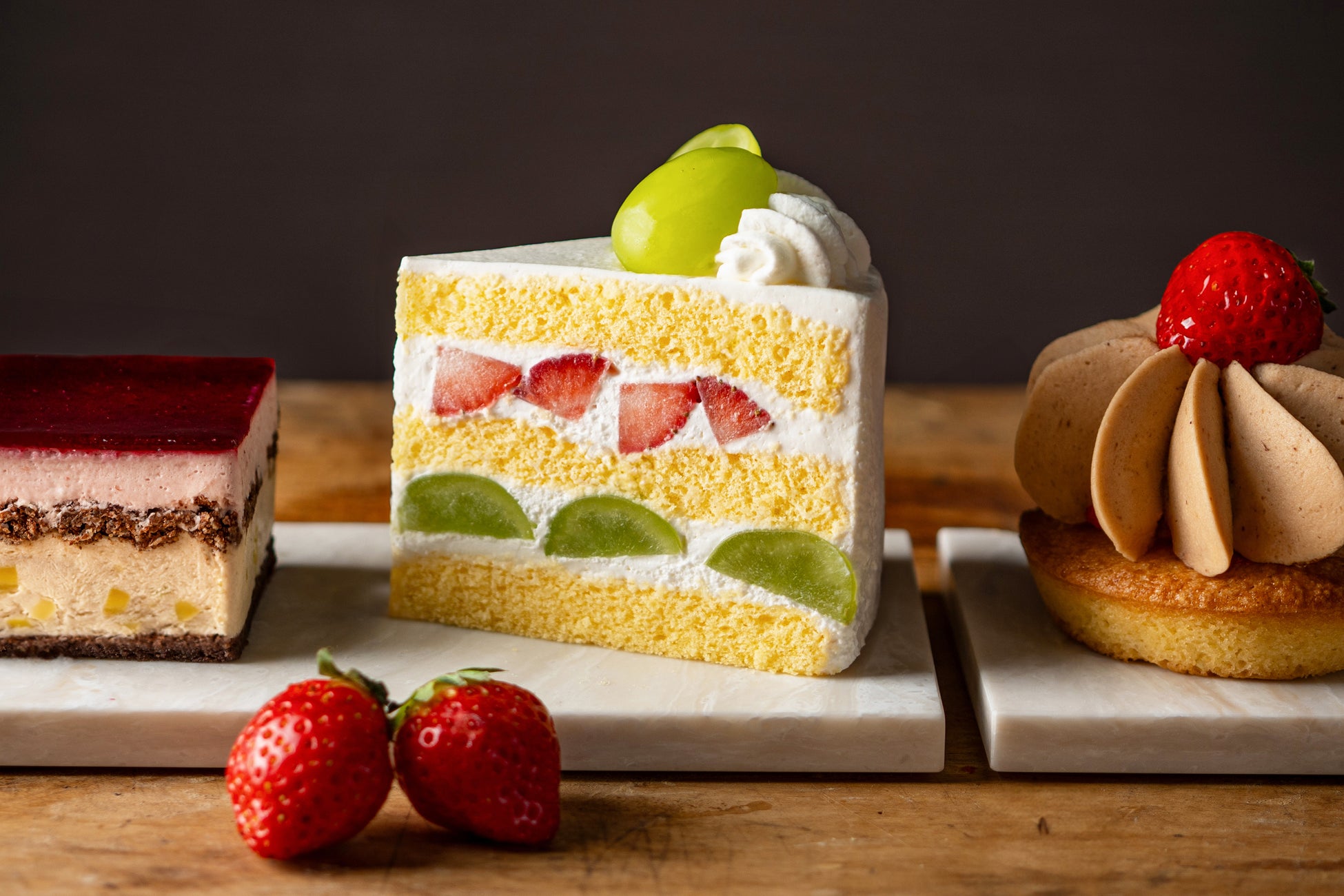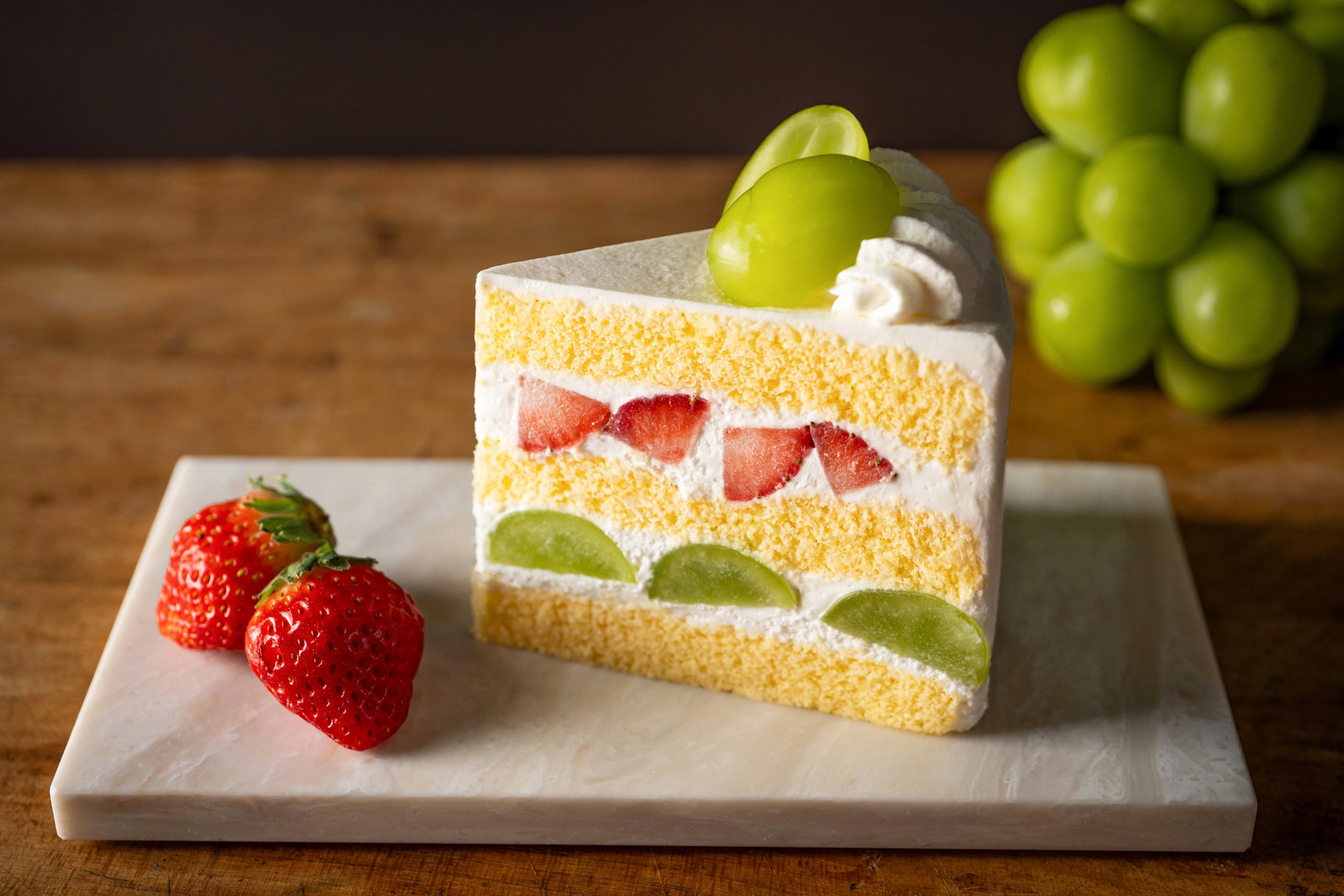 定番の「いちごのショートケーキ」をベースに、旬のシャインマスカットをたっぷり使った季節限定のショートケーキです。甘さ控えめの生クリームと、くちどけのよい自家製スポンジ生地はそのままに、この時期だけのいちごとマスカットのジューシーな甘さをお楽しみください。