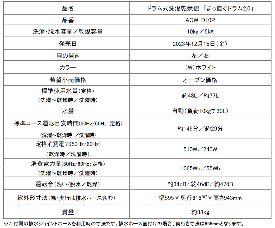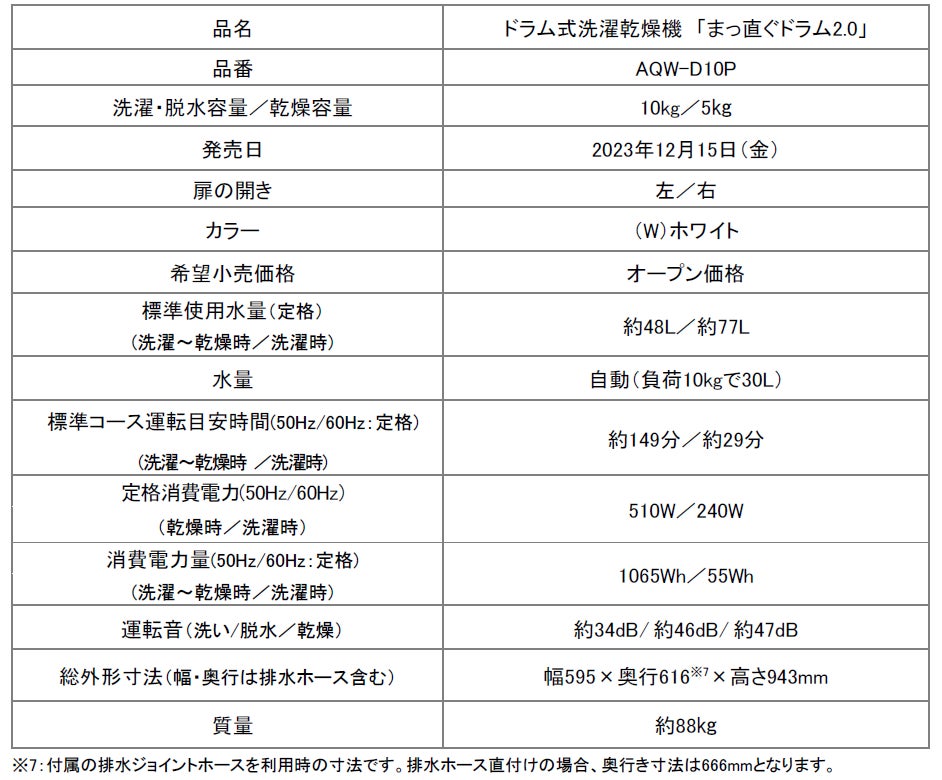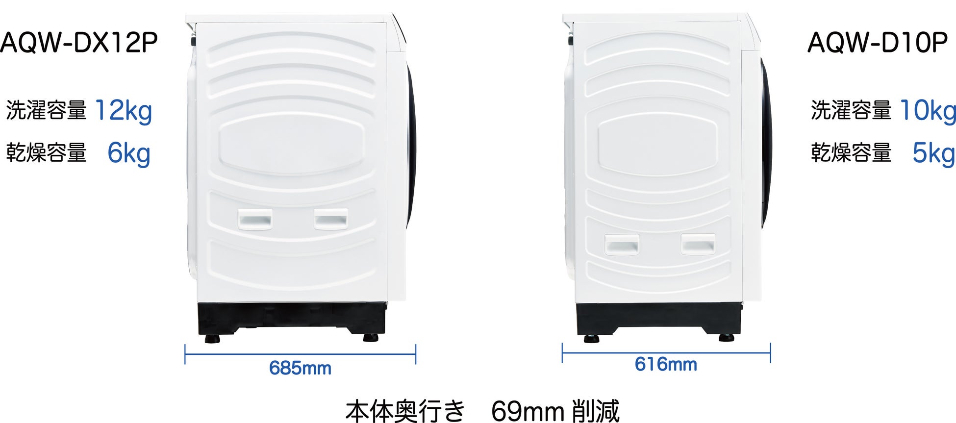 本体奥行き616mmの薄型設計でクラスNo.1コンパクトサイズ(※1)を実現! AQUA ドラム式洗濯乾燥機『まっ直ぐドラム2.0 AQW-D10P』を発売