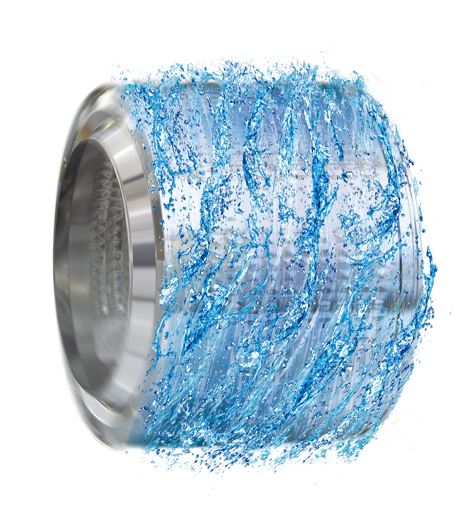 洗濯のたびに洗濯・脱水槽の除菌(※4)と黒カビ抑制(※5)をする機能です。すすぎの最後に洗濯槽を高速回転させ、遠心力による強い水流で洗濯槽の裏側の汚れを洗い流すことで、槽を除菌し、黒カビを抑制します。