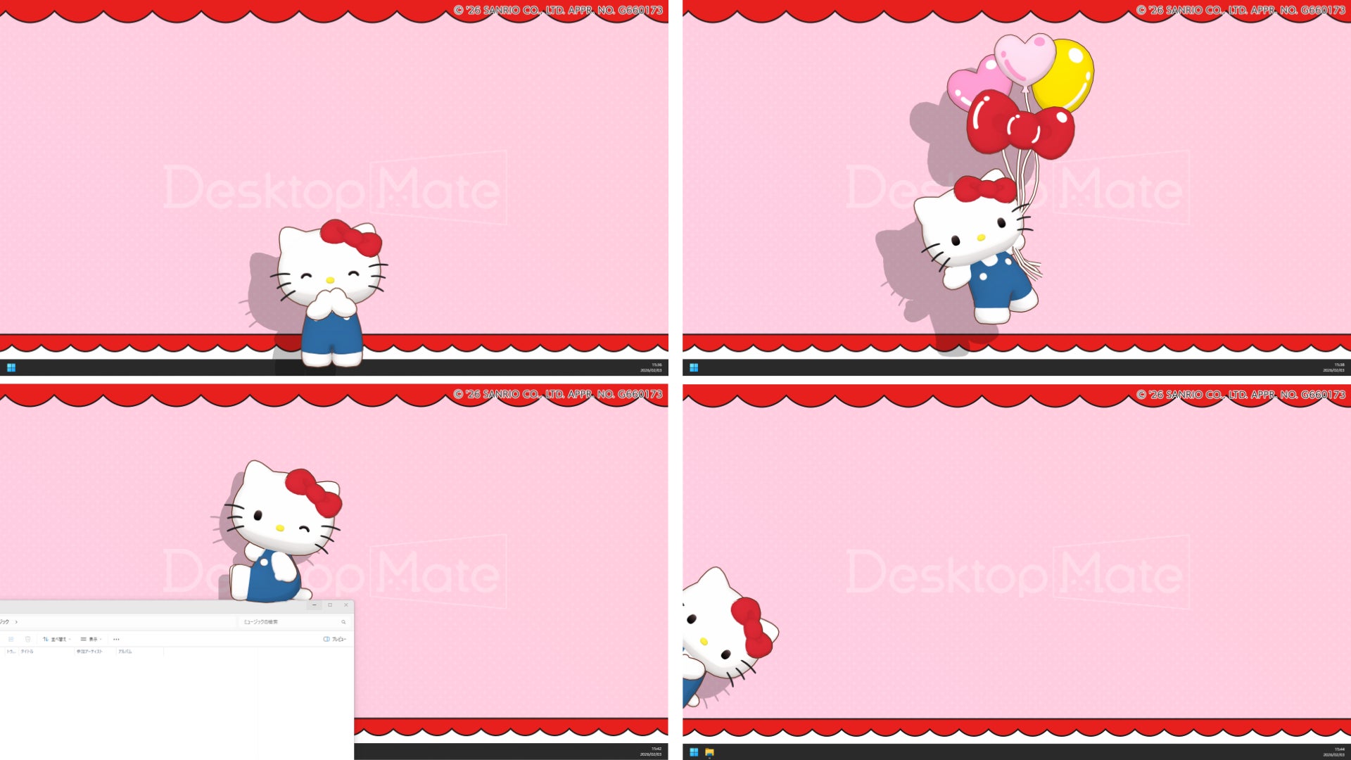世界中で愛されるサンリオのキャラクター「ハローキティ」がDesktop Mateについに登場!明るくてやさしい女のコが、あなたのデスクトップにやってきます。