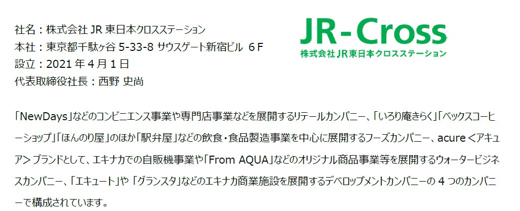 JR東日本クロスステーション公式サイト:https://www.jr-cross.co.jp/corp/